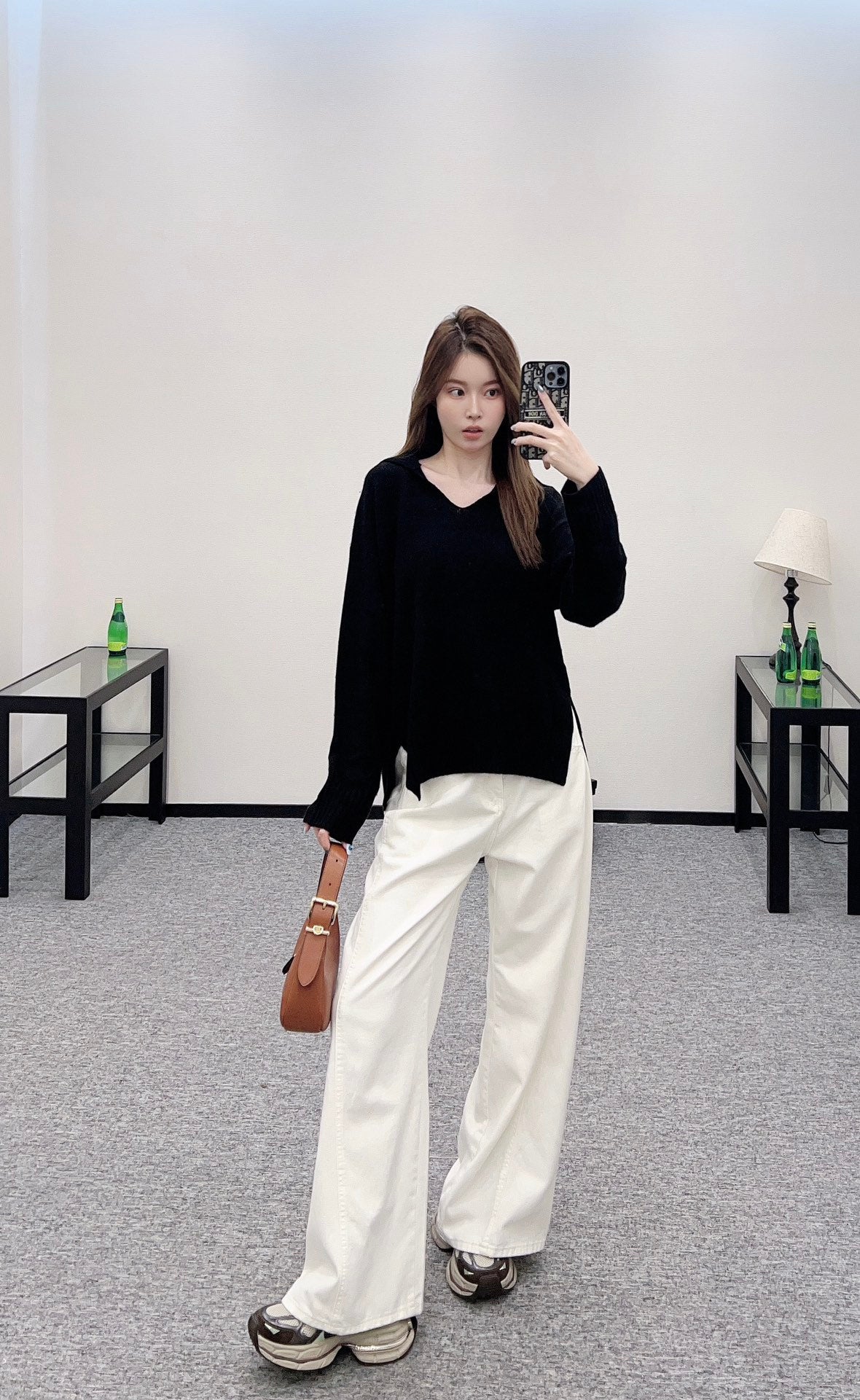 Customized YB cashmere yarn weaving, dense and fine needle craftsmanship, showing obvious wool texture, comfortable and stylish, shawl back lapel pullover sweater cut, loose drop shoulder version, slightly V-neckline reveals collarbone and makes you look thinner, shawl collar shows college charm, printed letters at the back enhance texture and add brand style, regular slim version, full of Korean style on the upper body, turning into a youth idol heroine