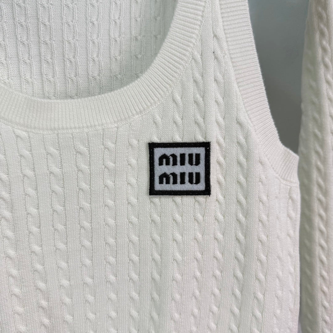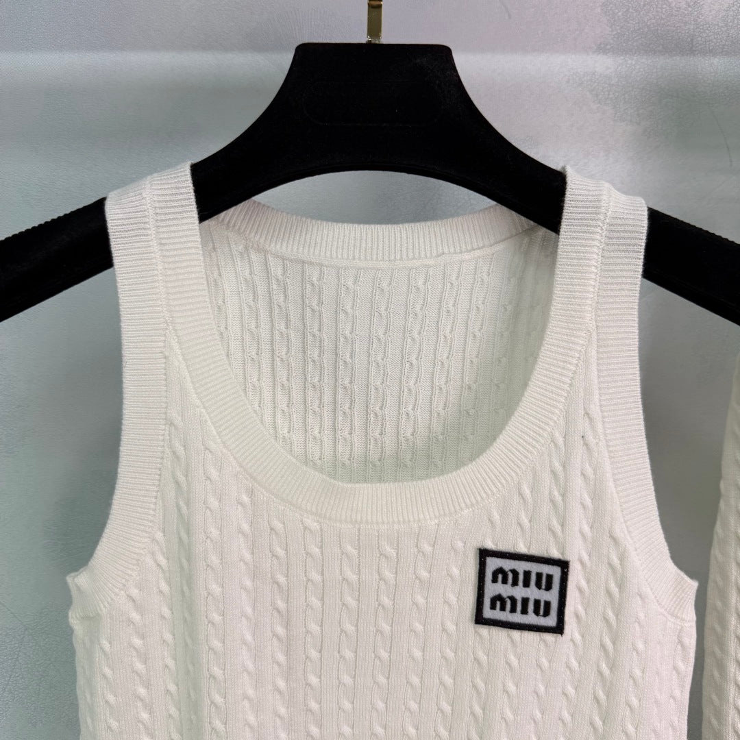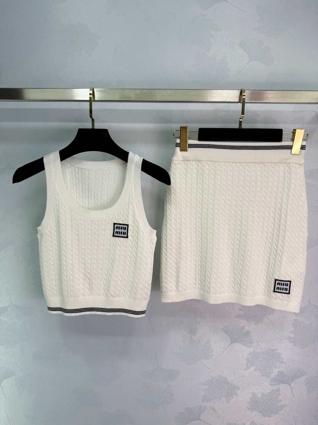 Customized YB wool yarn weaving, textured and shiny, comfortable and skin-friendly. U-neck vest skirt set. Finely crocheted throughout. Regularly arranged waffle textures to highlight the design. The letter logo on the chest. Elastic stripes on the hem to create a contrasting layering effect, highlighting the brand personality and the overall sense of wear. Elasticity makes it more refined. Paired with the same series of slim skirts. The pocket stripes and the logo on the hem echo each other. Wearing makes you look thinner and shows a relaxed tone. Light luxury and fashionable temperament. Can be worn alone or layered. The first choice for fashionable wear in all seasons.