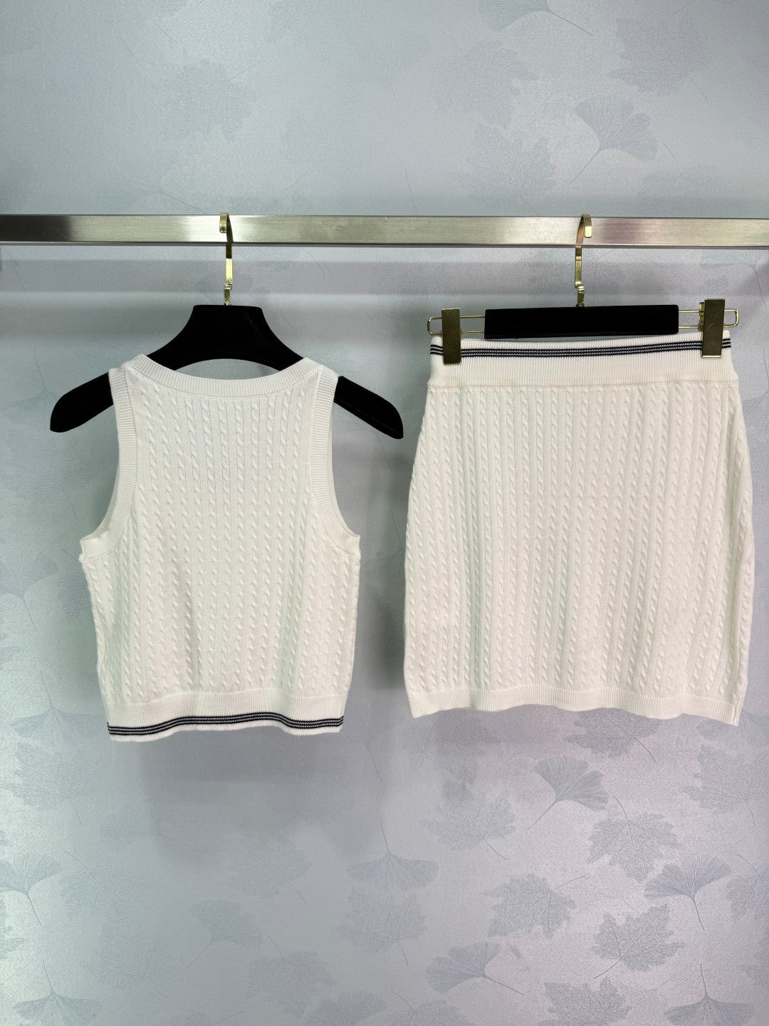 2025 Early Autumn New Arrivals Embroidered Vest Skirt Knitted Suit