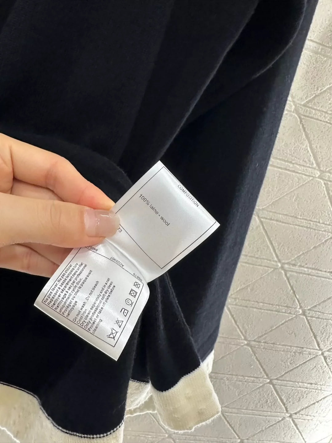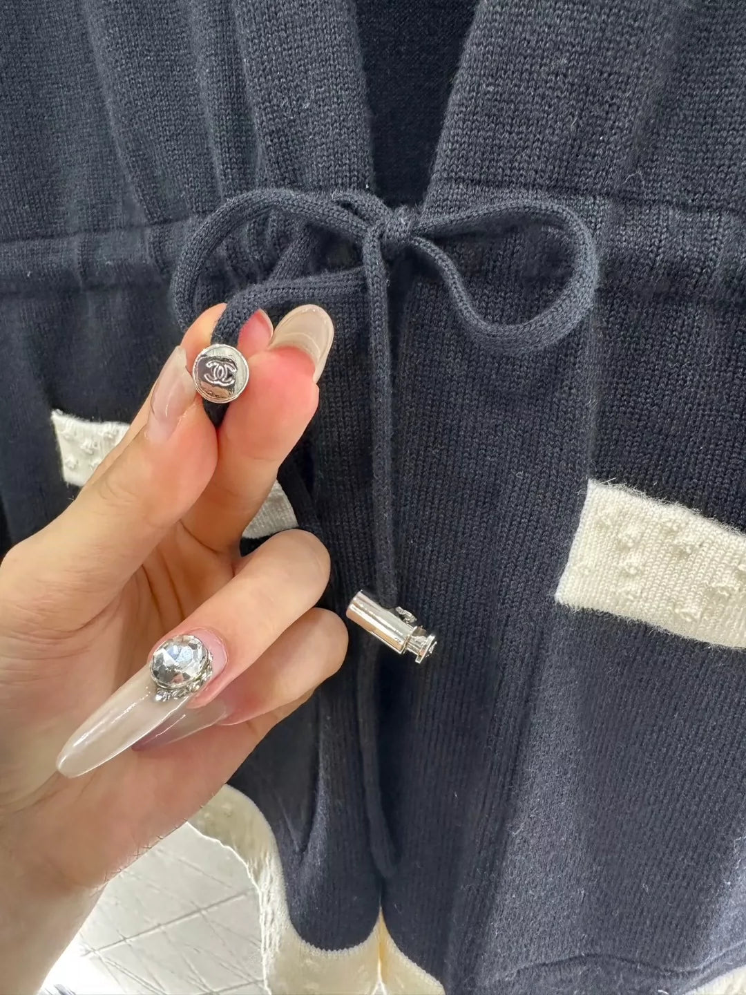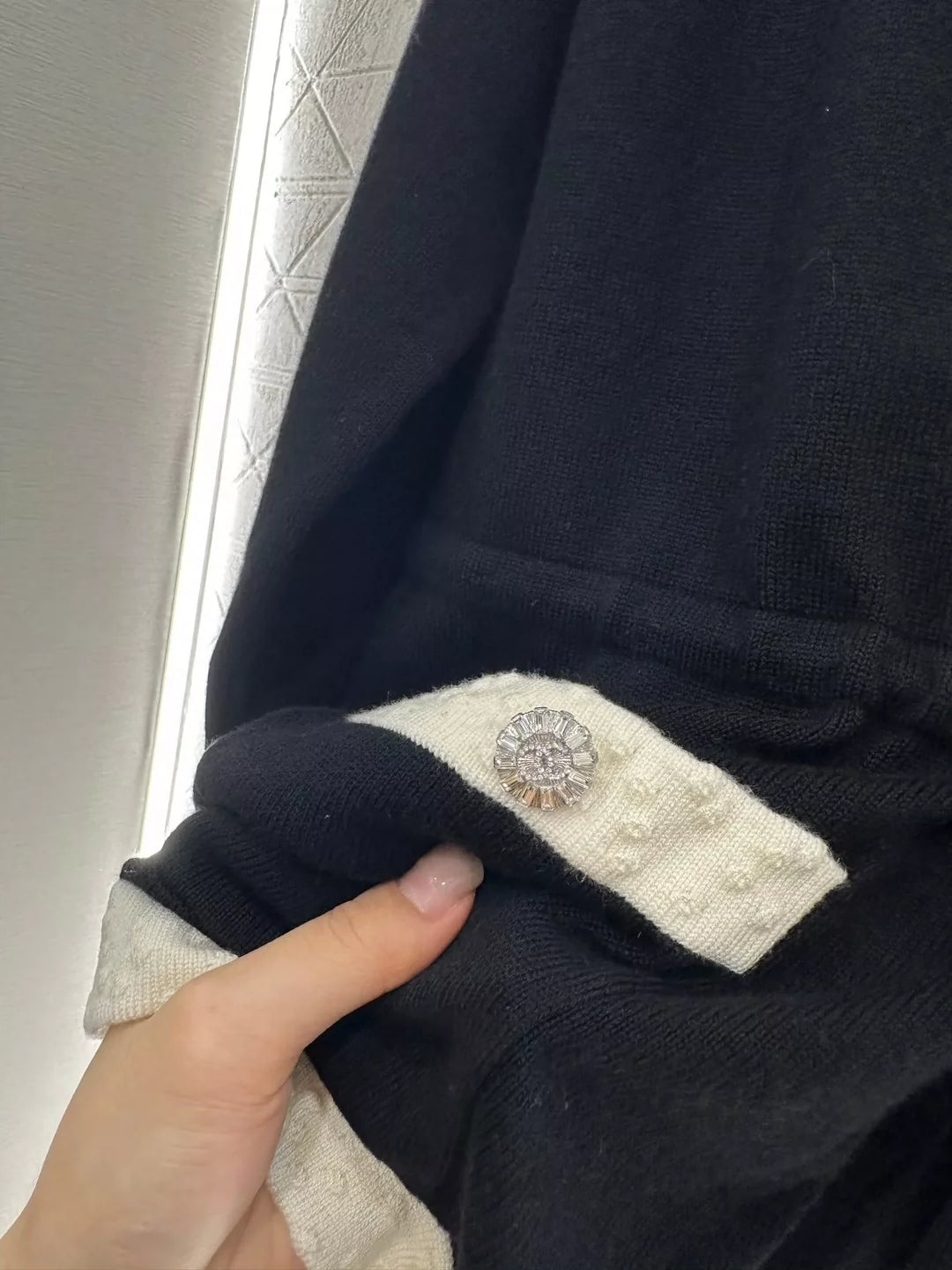 wool yarn knitting texture advanced comfortable soft V-neck knitted cardigan cut through the body of the fine crochet texture texture body pure black with white threaded edging durable look versatile white granular decorative fine style waist drawstring outline curves