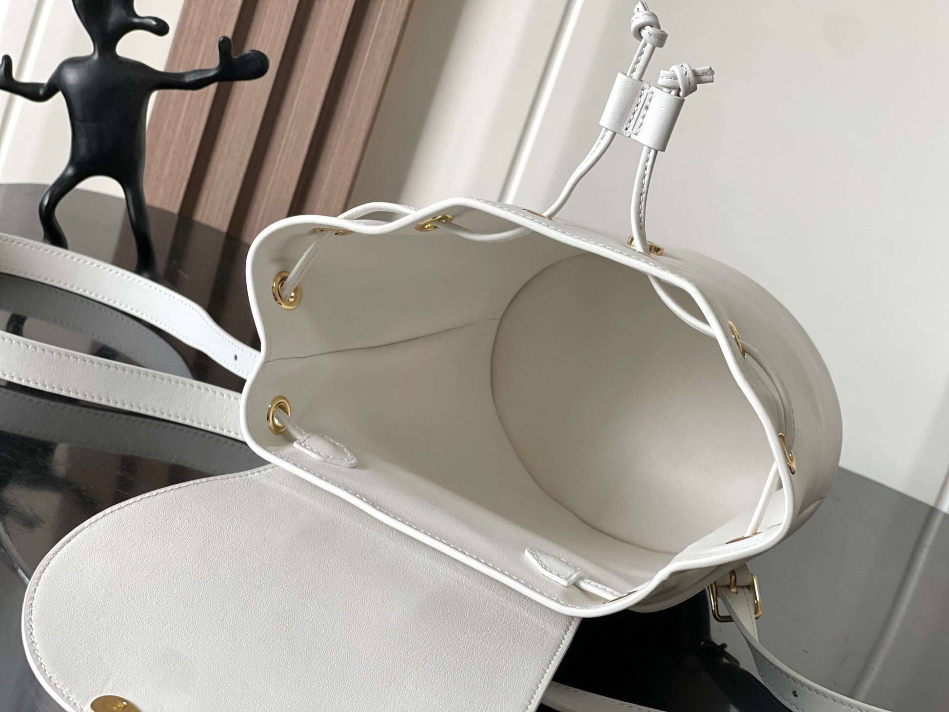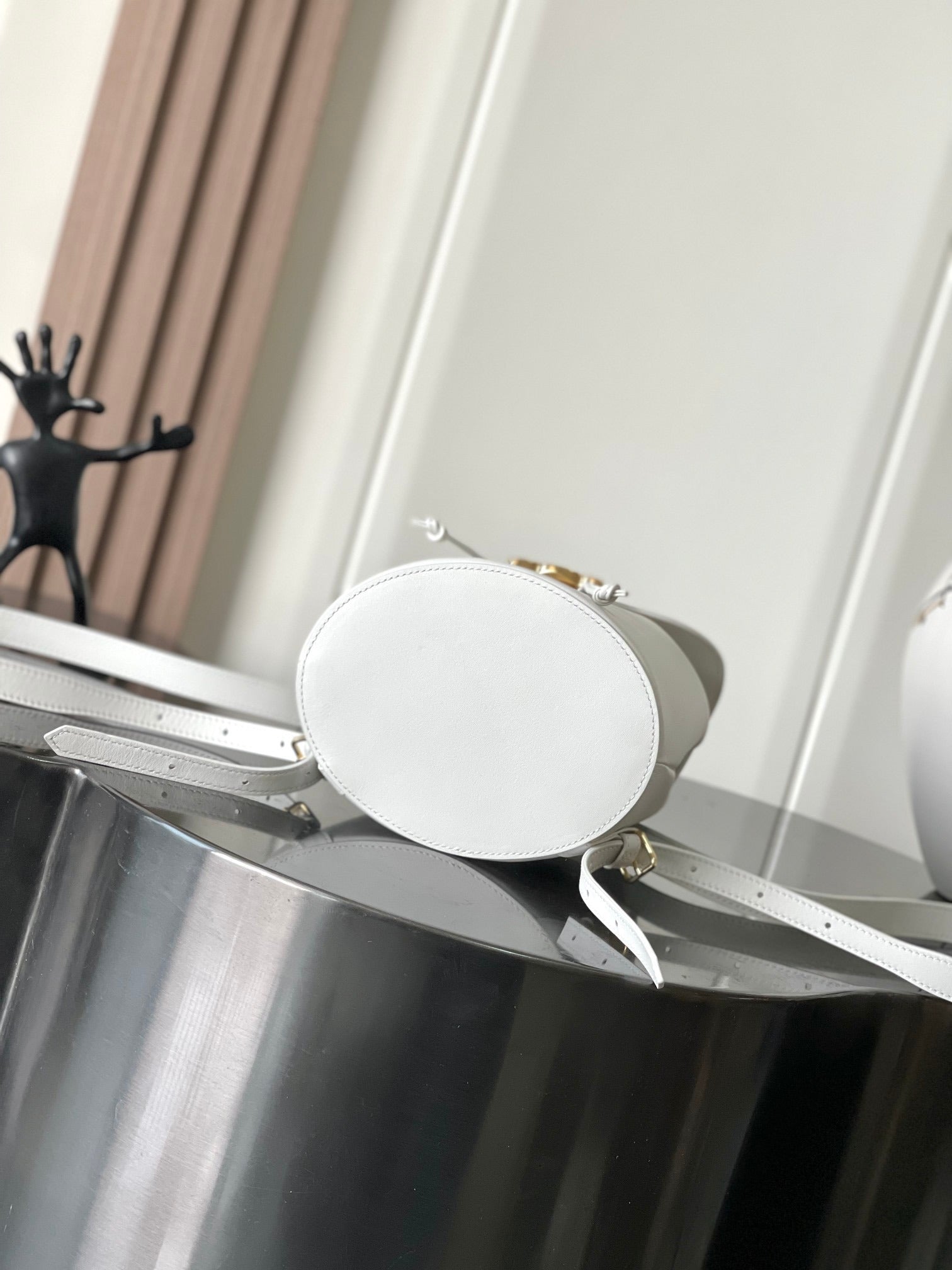 sheepskin leather lining, handheld, duffel and shoulder strap, TRIOMPHE magnetic closure, drawstring leather lanyard, leather carry handle , length 8cm