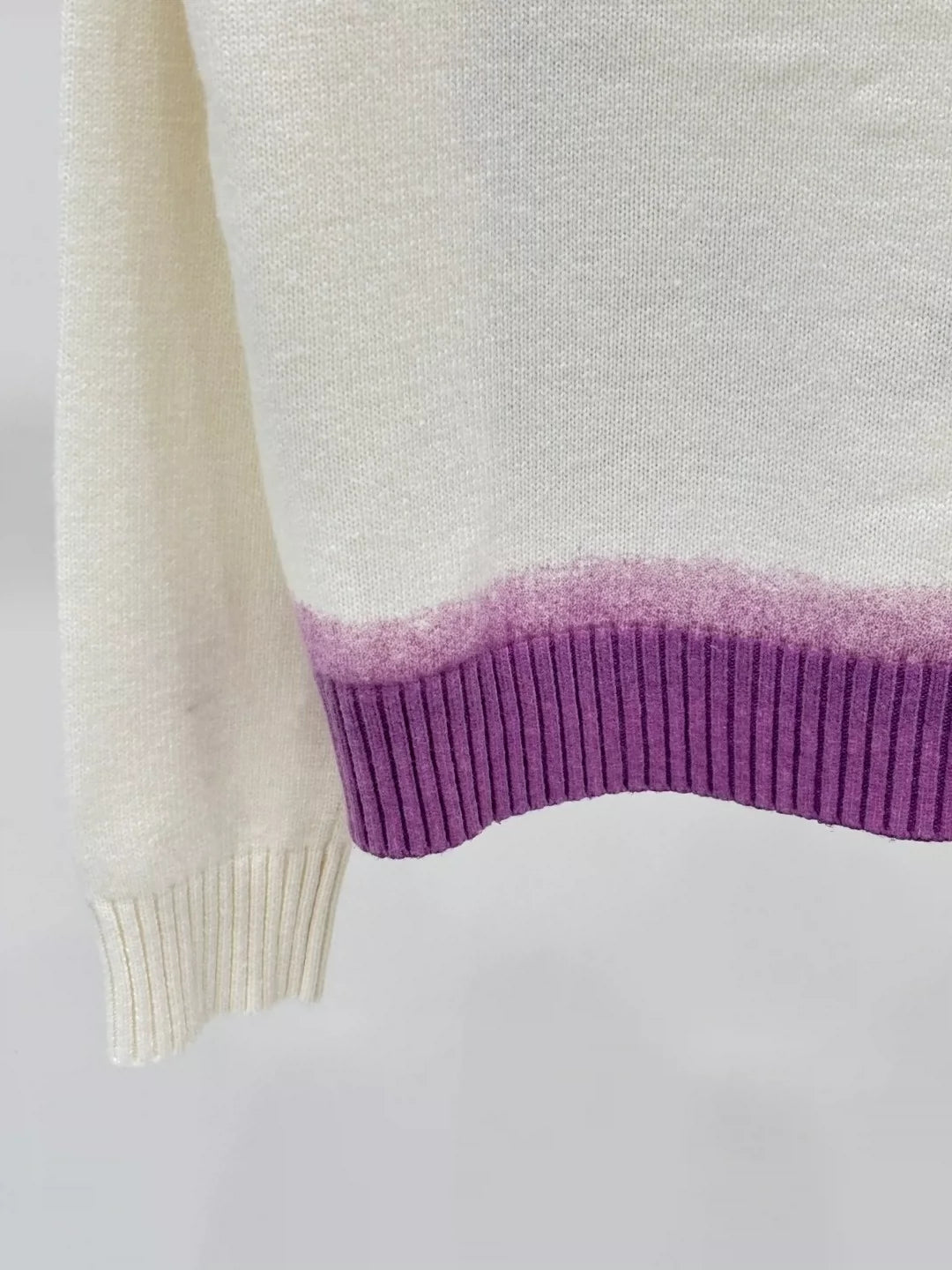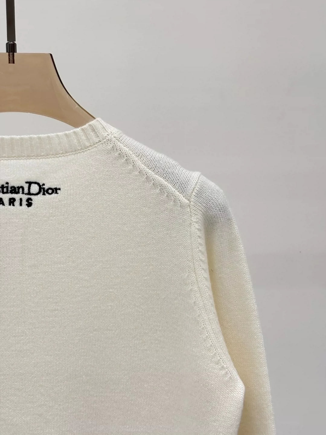 D 25 Early Autumn New Round Neck Peony Embroidery Knitted Top