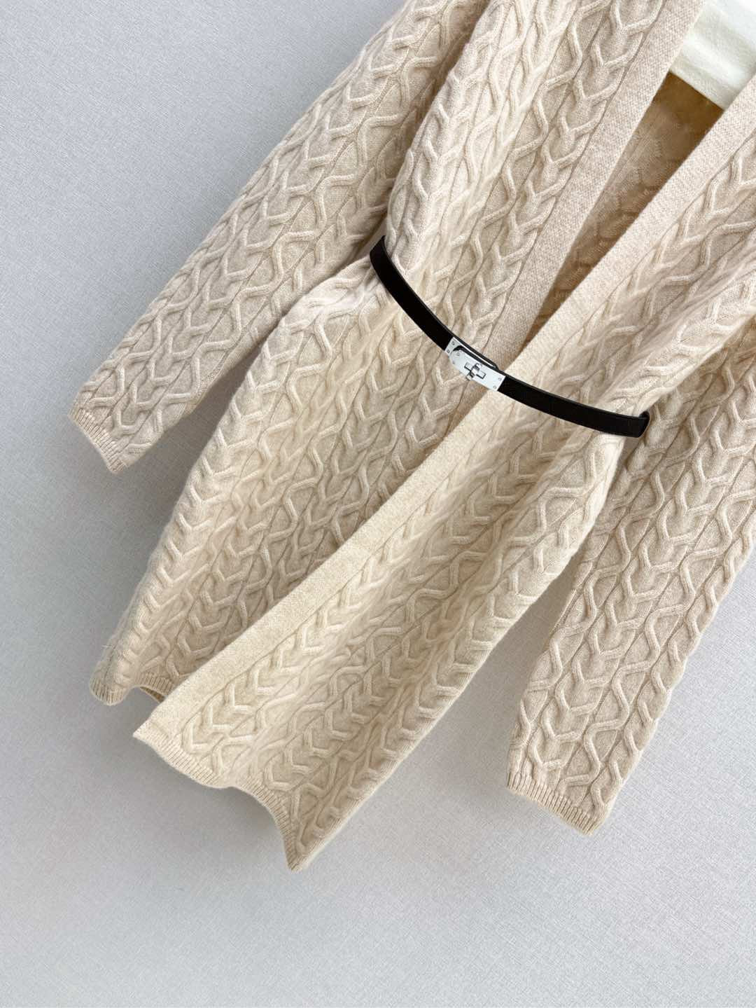 He 25 New hardware belt decoration mid-length wool cardigan(GRAY/BEIGI)