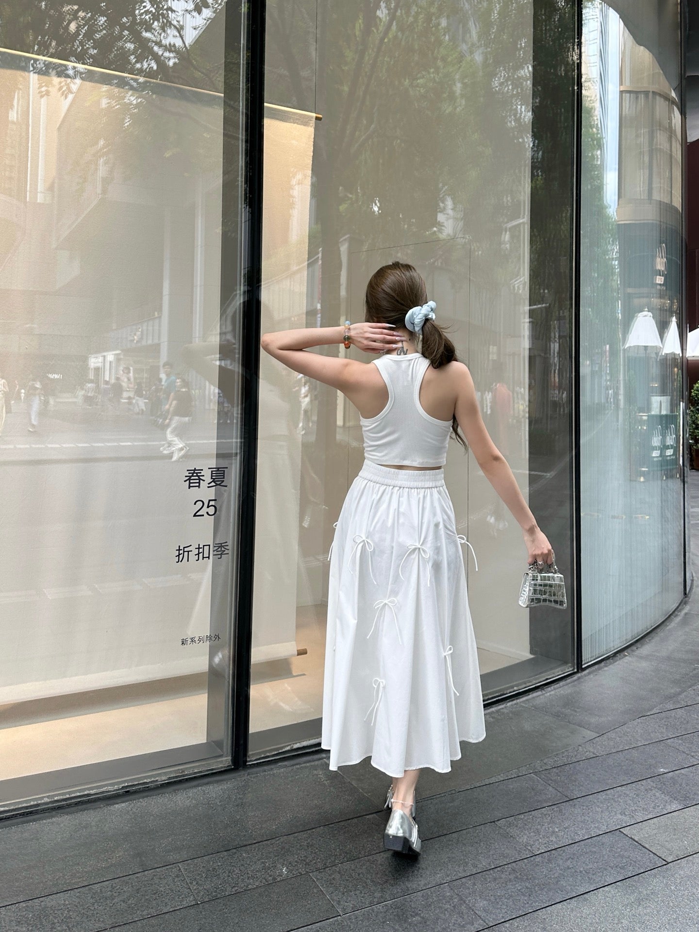 P 25SS new style skirt/classic triangle logo + bow decoration c long skirt