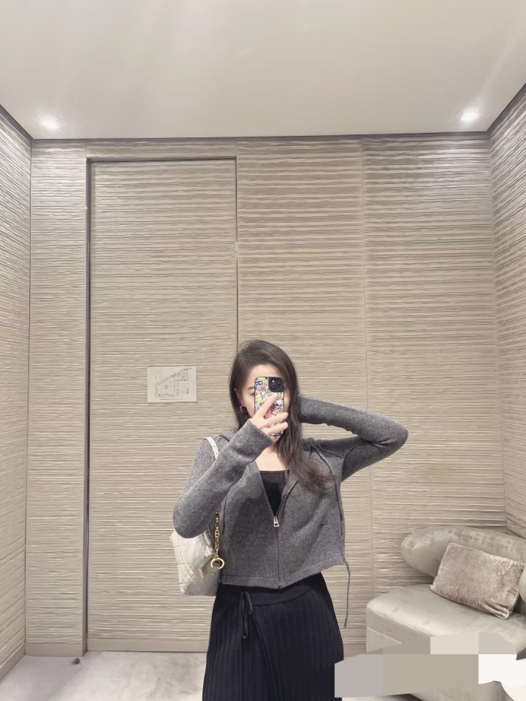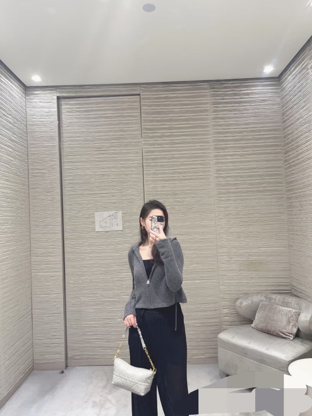 Maßgeschneidertes Weben aus importiertem YB-Wollgarn, feine Textur, weich und bequem, Schnitt einer Strickjacke mit Kapuze, normale Version für modisches Temperament, schlanke und integrative Figur, Buchstaben-Logo-Dekoration an der Taille für Markenton, symmetrisches perforiertes Knotendesign auf beiden Seiten des Saums, voller Persönlichkeit