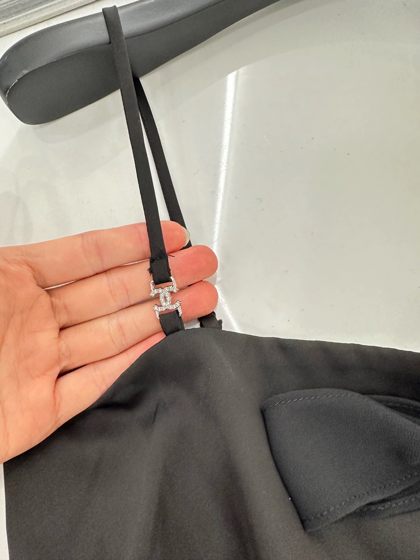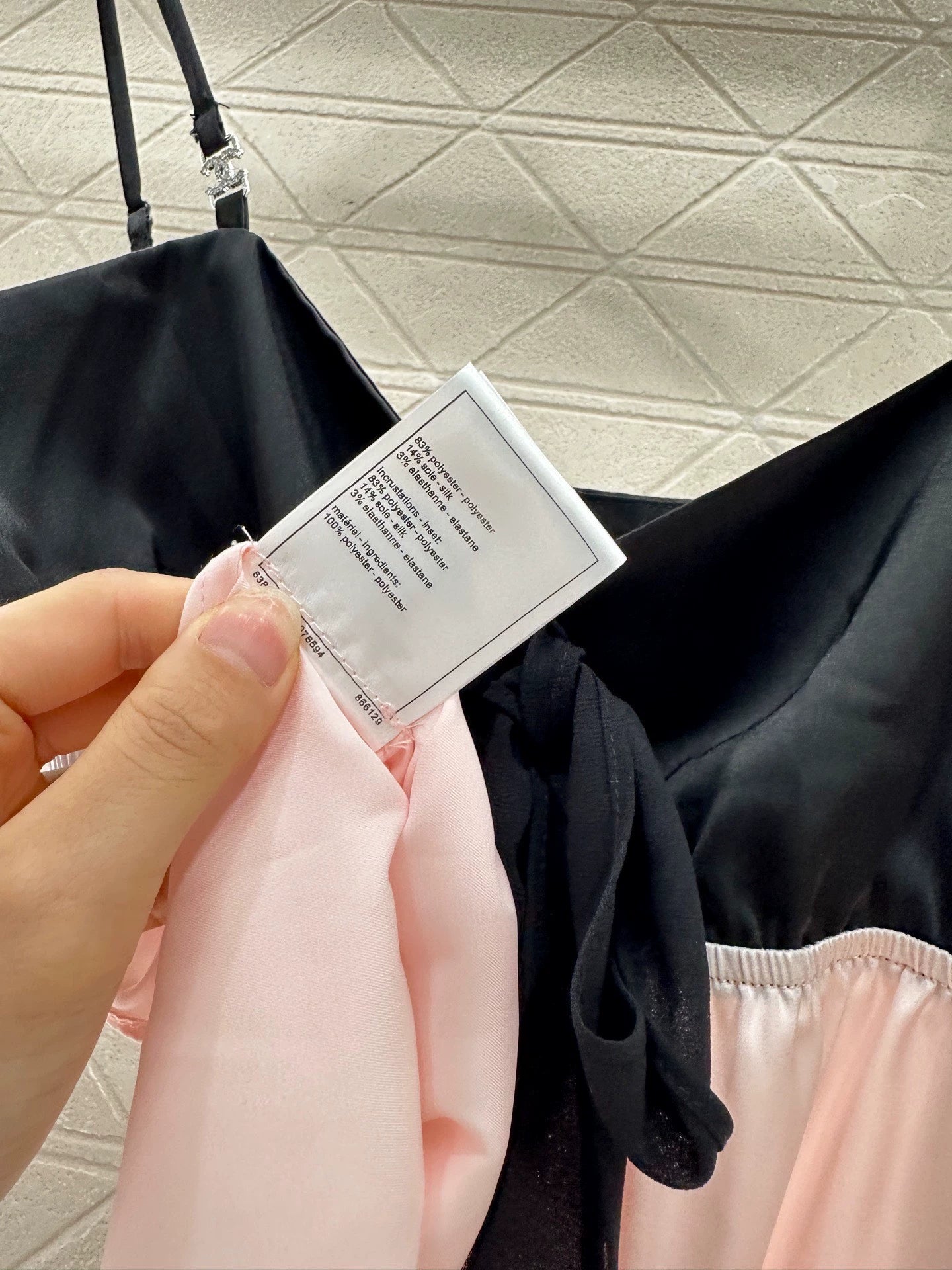 Maßgefertigtes YB-Acetatmaterial für einen bequemen, hautfreundlichen Look mit edlem, zartem Glanz. Camisole-Design. Schmale Träger mit integriertem Doppel-C-Strass-Logo betonen die anmutigen Schultern. Eine mittig geschnürte Schleife betont die Brust für einen dezenten und zugleich edlen Look. Das kontrastierende schwarz-pinke Oberteil sorgt für einen Lagenlook. Sexy und schmeichelhaft – dieser vielseitige, schlankmachende Schnitt ist mit individuellen Stoffen und Accessoires erhältlich. Schauen Sie nach der neuesten Version.