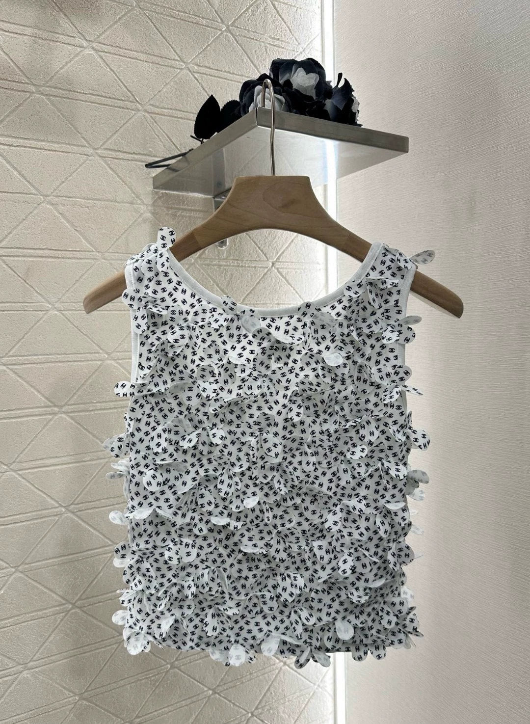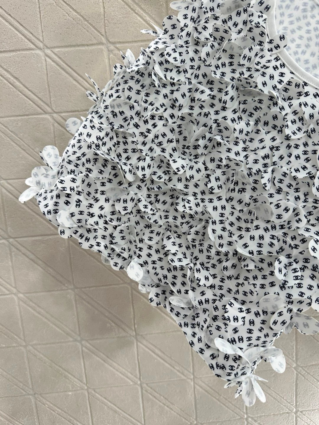 Benutzerdefinierte YB importierte Materialstruktur glänzend hoher Tragekomfort handgefertigtes Unterhemd mit Blumenmuster in Schwarz-Weiß-Farboptionen vollständig verziertes Logo mit Buchstaben und dreidimensionaler Blütenblattform voller Weihrauchfamilie edler, wunderschöner Stil Brust Schlüsselbein moderate Haut mäßig gestutzte Schultern und Halslinie süß, enthüllt die sexy Qualität der hohen Qualität voller Sinn für Textur wird leicht zum Blickfang beim Tragen lockeres Temperament bevorzugte Wahl des benutzerdefinierten Stoffes und Hilfsmaterials zur Identifizierung der Version der hohen Version