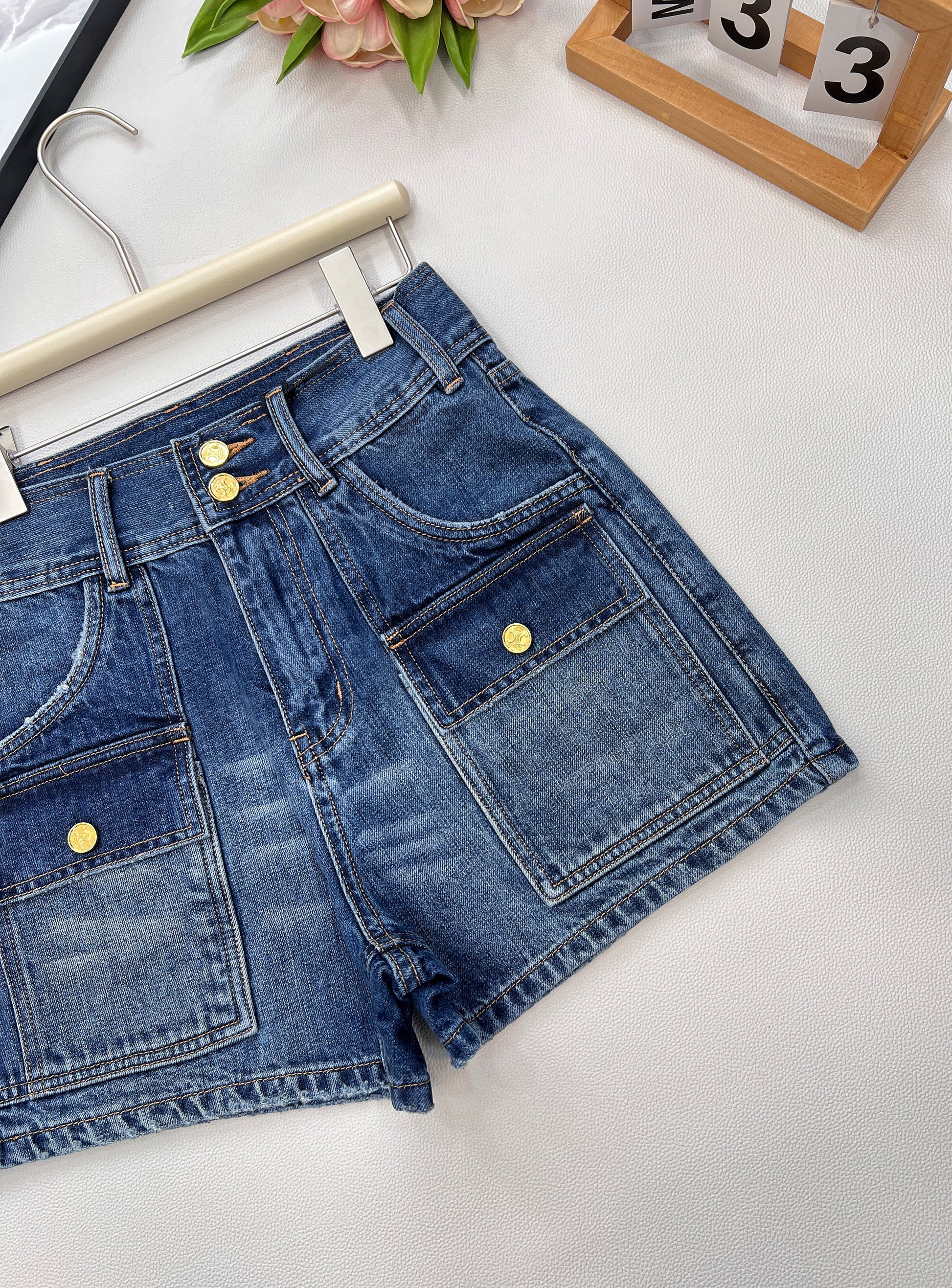 CE 25 Sommer neues Produkt blau hohe Taille Gürtelschlaufe Taschendekoration Jeans-Shorts