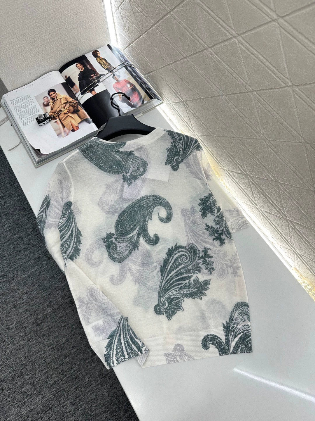 Maßgefertigter YB-Wollgarn-Strick, weich und bequem, stylisch und schlank machend. Langärmliger Strickcardigan mit durchgehender Knopfleiste vorne für einfaches An- und Ausziehen. Der Hauptteil hat eine weiße Basis mit kontrastierenden Walnussblüten-Dekorationen, ergänzt durch gerippte Besätze für ein edles Finish. Das ikonische Bienen-Logo an der Seite der Taille verleiht einen Hauch von Eleganz und eine sanfte Ausstrahlung und macht ihn perfekt für jedes Outfit. Stoff und Futter nach Maß. Wählen Sie die hochwertige Version.