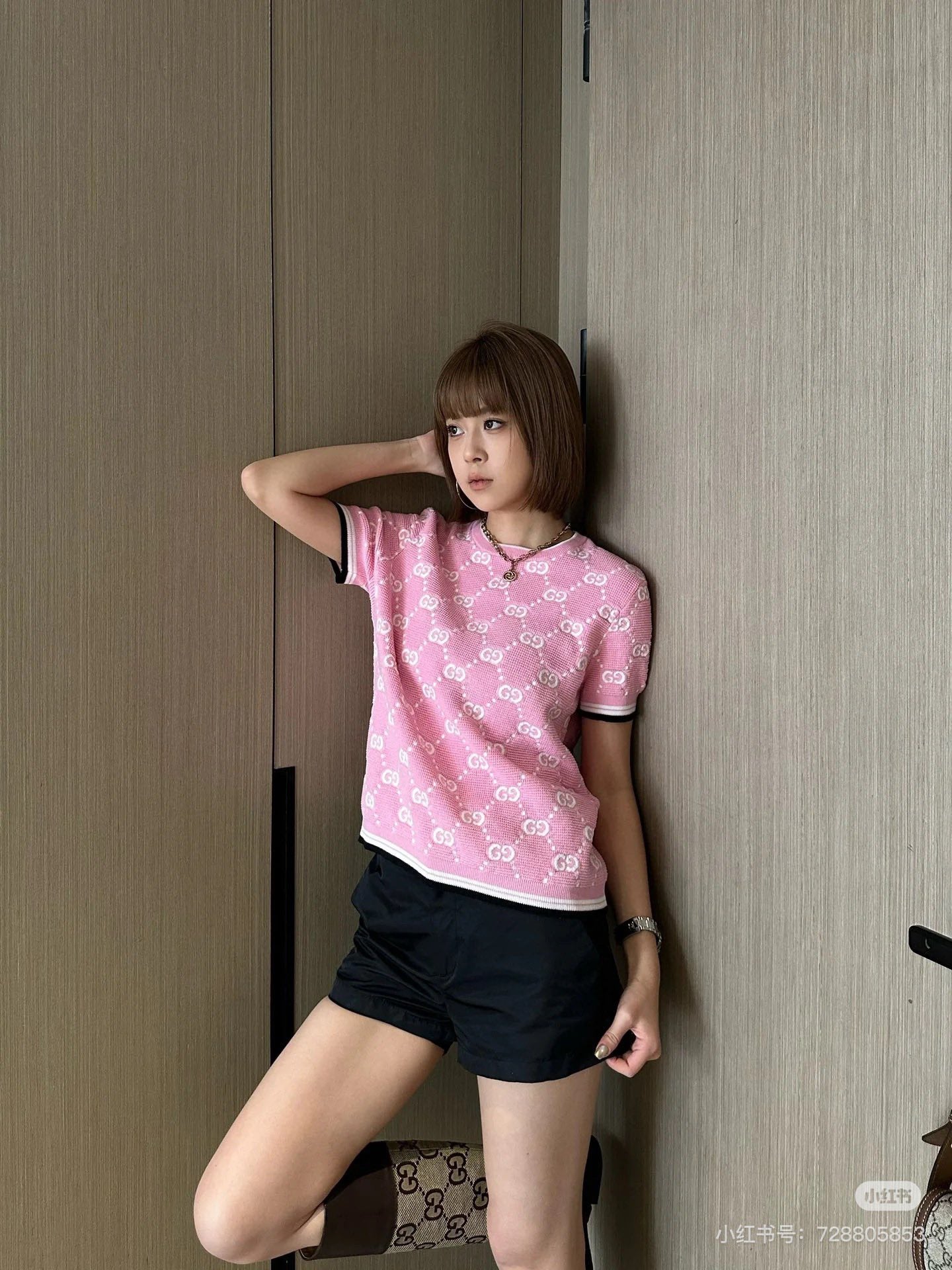 G 25 Frühen Frühling Neue Applizierte All-over-Print Casual Strick Kurzarm