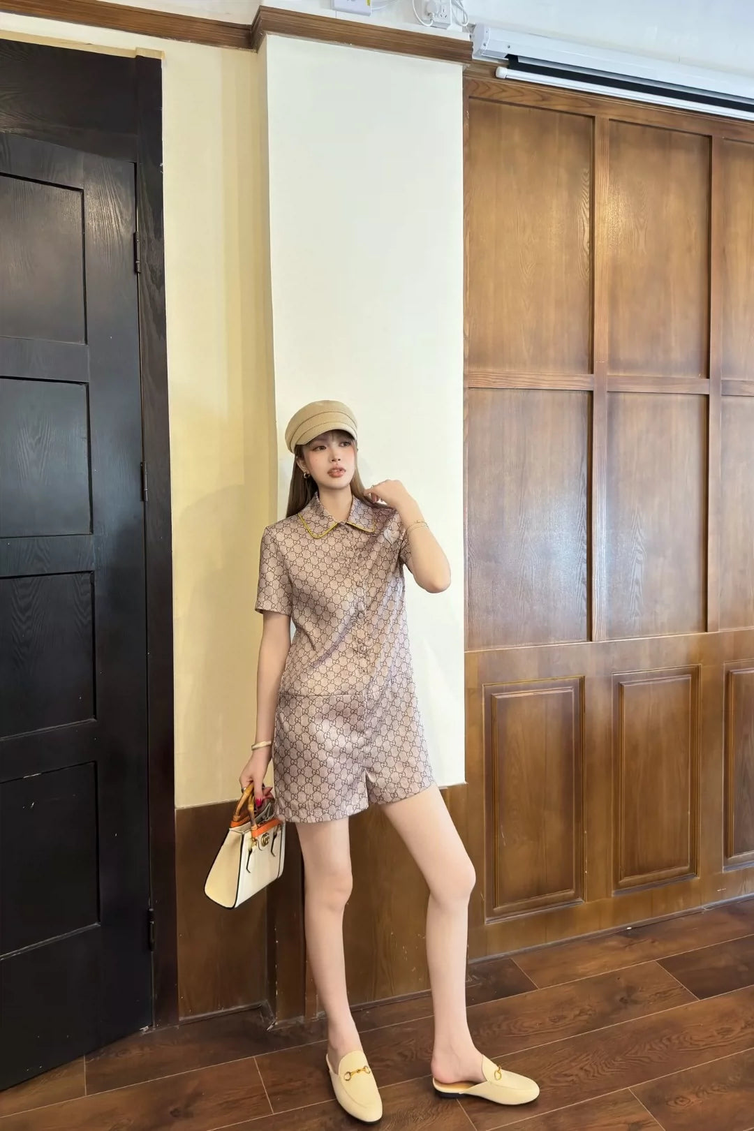 G 25 Neue einteilige Shorts mit Buchstabendruck und kurzen Ärmeln am Revers