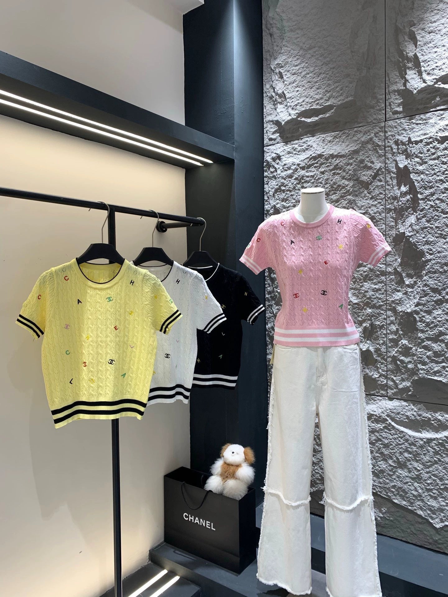 L 25 Neue dreidimensionale stickerei brief stricken kurzarm