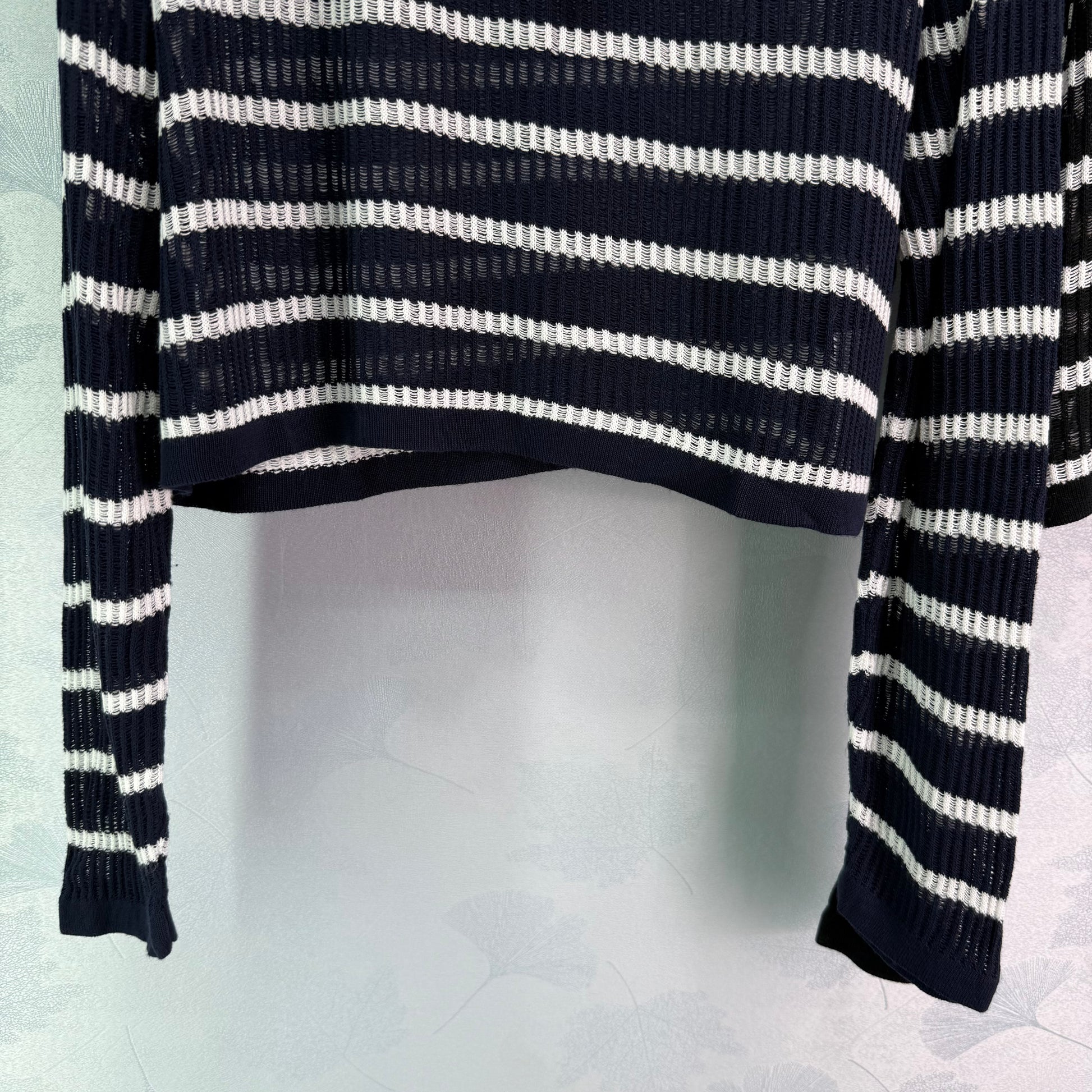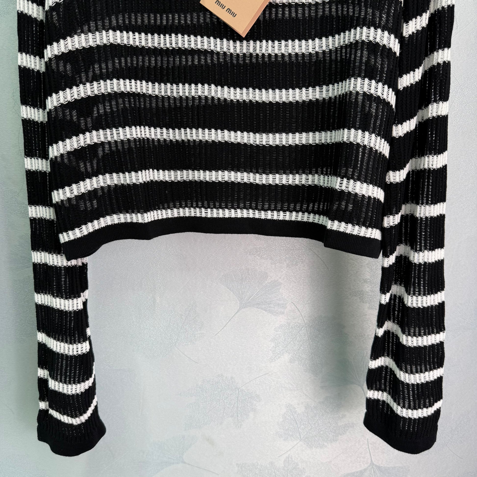 Maßgefertigtes Weben aus importiertem Garn, hochwertige Textur, angenehm zu tragen, Rundhalspullover mit langen Ärmeln, über den Körper verteilte Streifen mit hohler Strickstruktur, die den Ton des literarischen Stils setzen und das Buchstabenlogomuster auf der Brust vervollständigen, was den High-End-Sinn der Marke zeigt, die normale Kurzversion betont die Figur, der Ton ist entspannt und hochwertig, sowohl Ober- als auch Unterbekleidung sind hervorragend!
