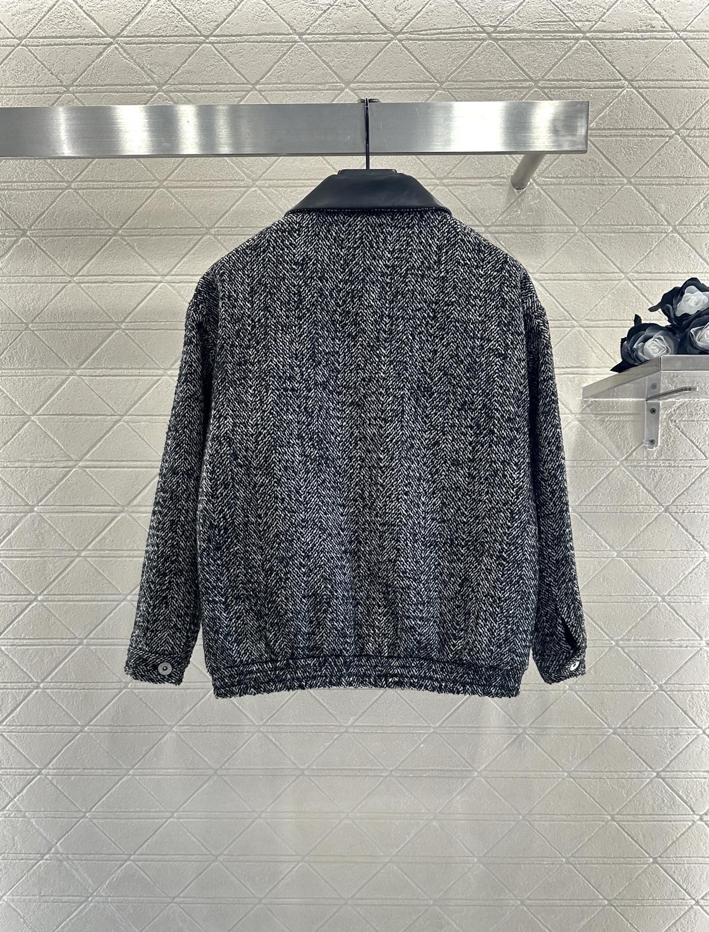 Product Introduction: Customized YB imported cotton wool material, delicate texture, crisp and stylish, lapel zipper jacket jacket version, narrowed cuffs ➕ The elastic narrowing of the hem provides a unique windproof and cold proof effect. The finished garment is made of light gray woven texture wool, with large capacity pockets on both sides for practical warmth. The collar is designed with leather fabric to light up