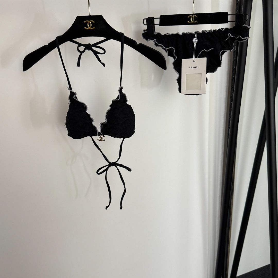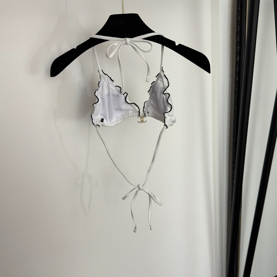 C 25 Nouveau maillot de bain bikini en tissu éponge avec logo fendu (BLANC NOIR)