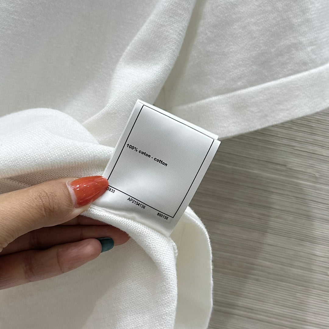 Tissage de fil de coton personnalisé YB, respirant et confortable, plein de texture, coupe courte à épaules droites, texture légère plus adaptée à l'été, motif de lettre double C décalé en diamant d'amour sur la poitrine, couches colorées, étiquette métallique double C au dos, soulignant le style de la marque, le vêtement est légèrement élastique, montrant un effet visuel amincissant, il est à la mode à porter seul ou avec une couche intérieure