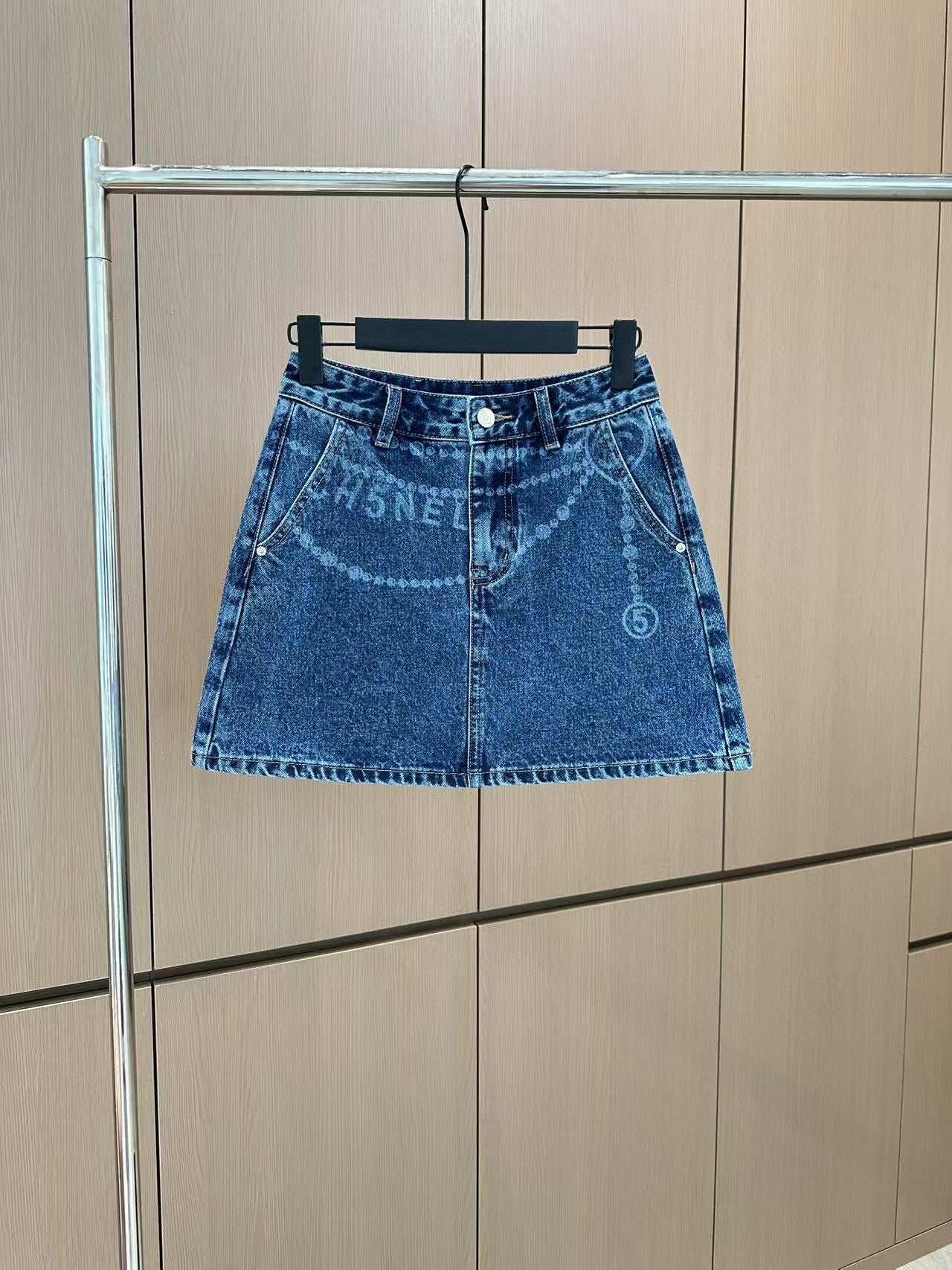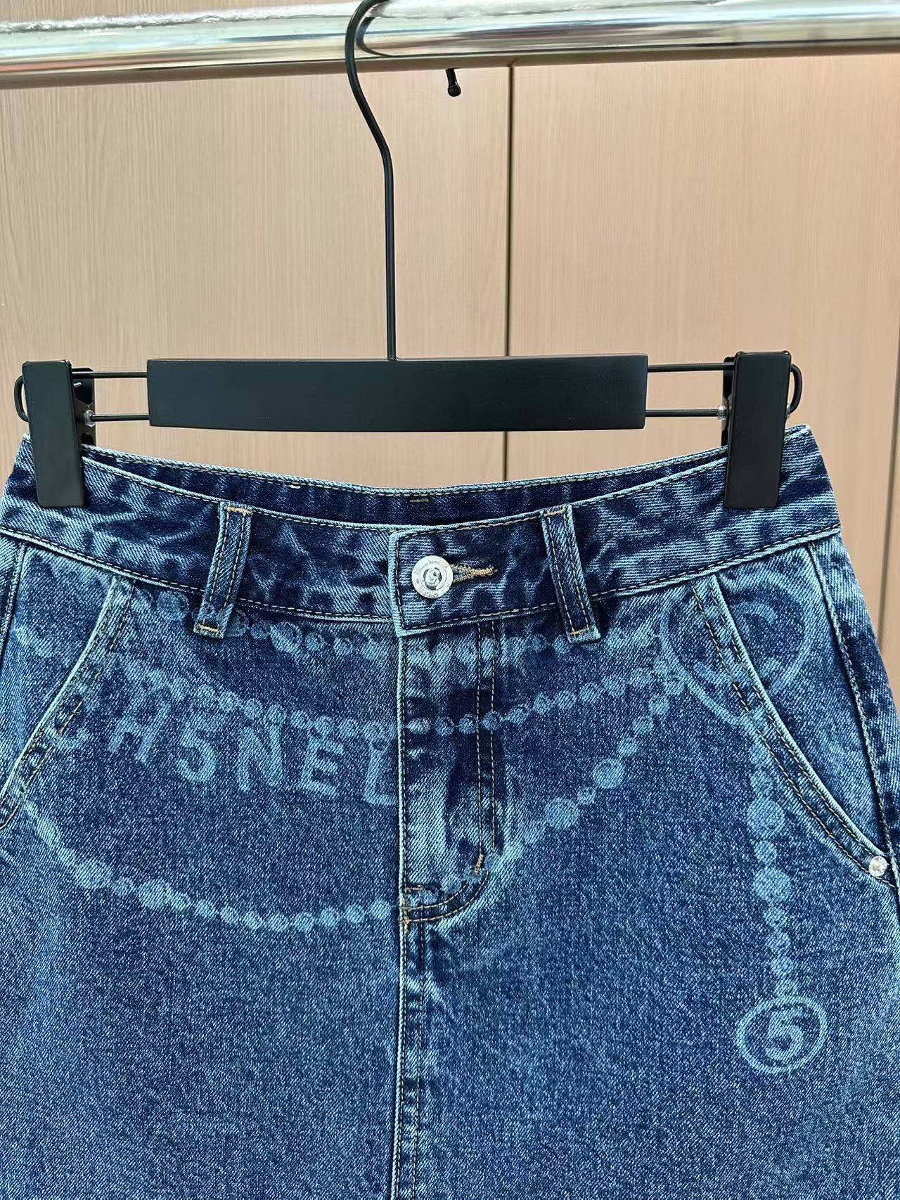 Jupe mi-longue en jean imprimé C 25