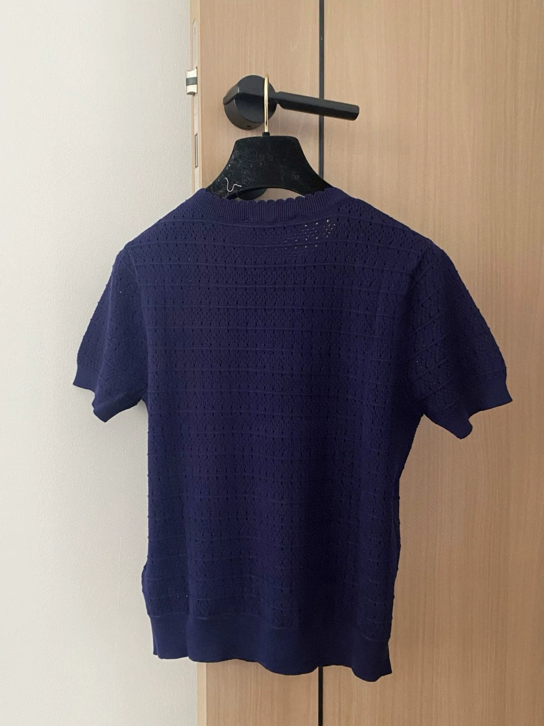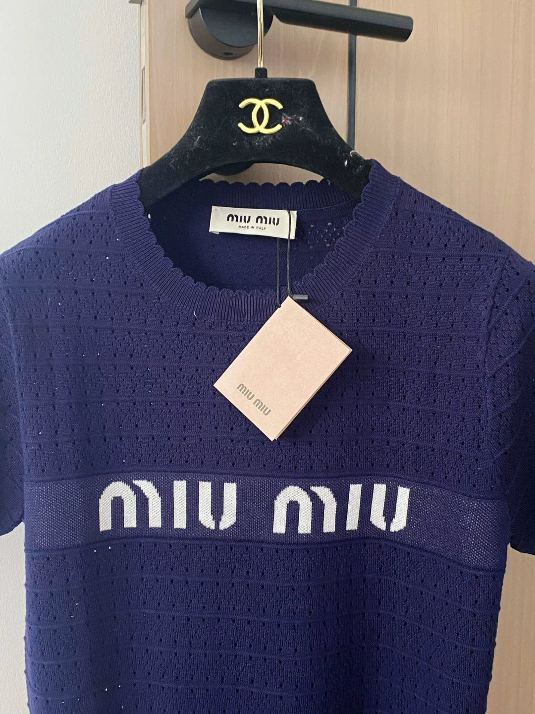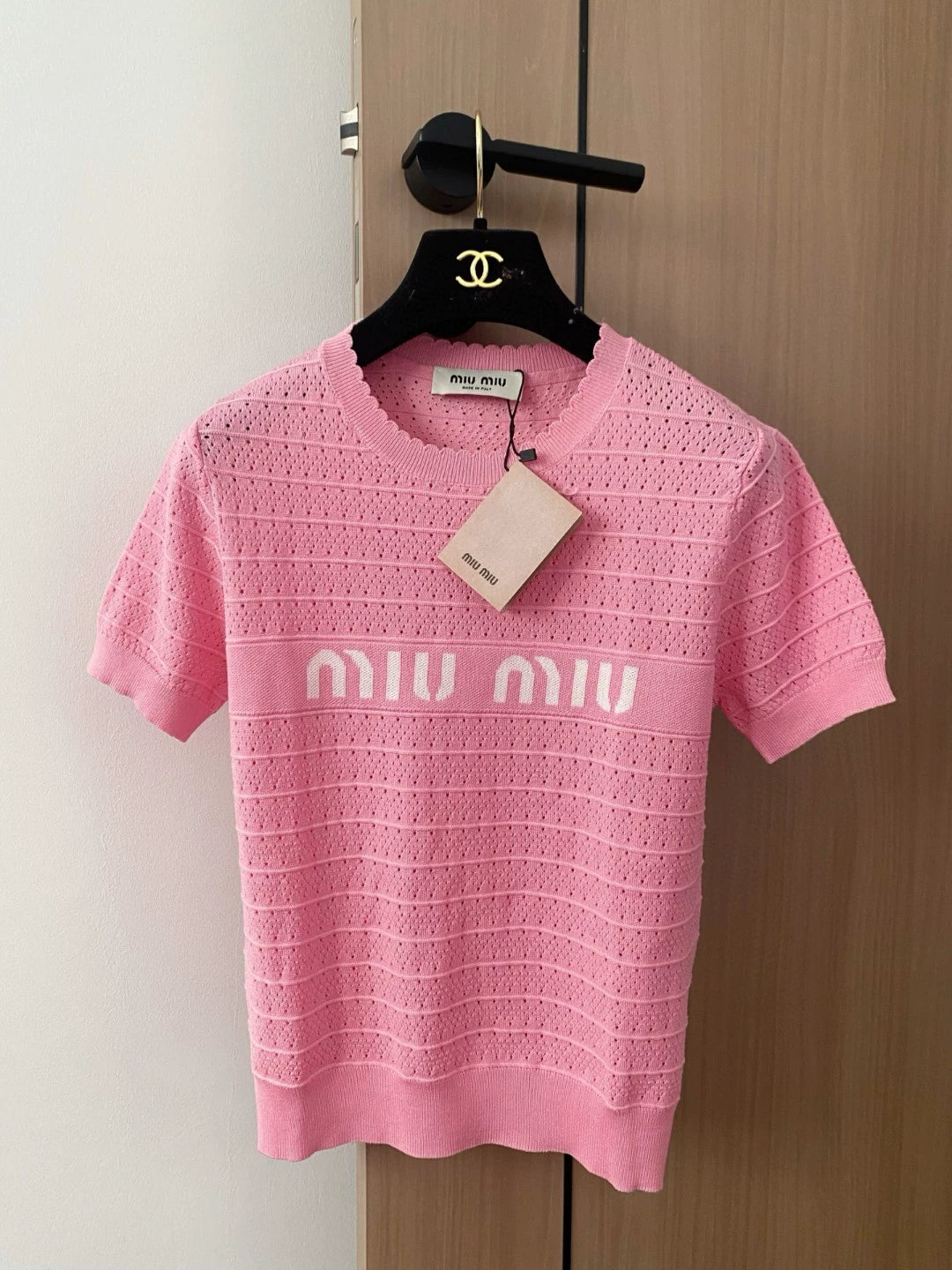 M 25 nouveaux hauts en tricot à manches courtes et col rond creux avec lettres de collision de couleurs