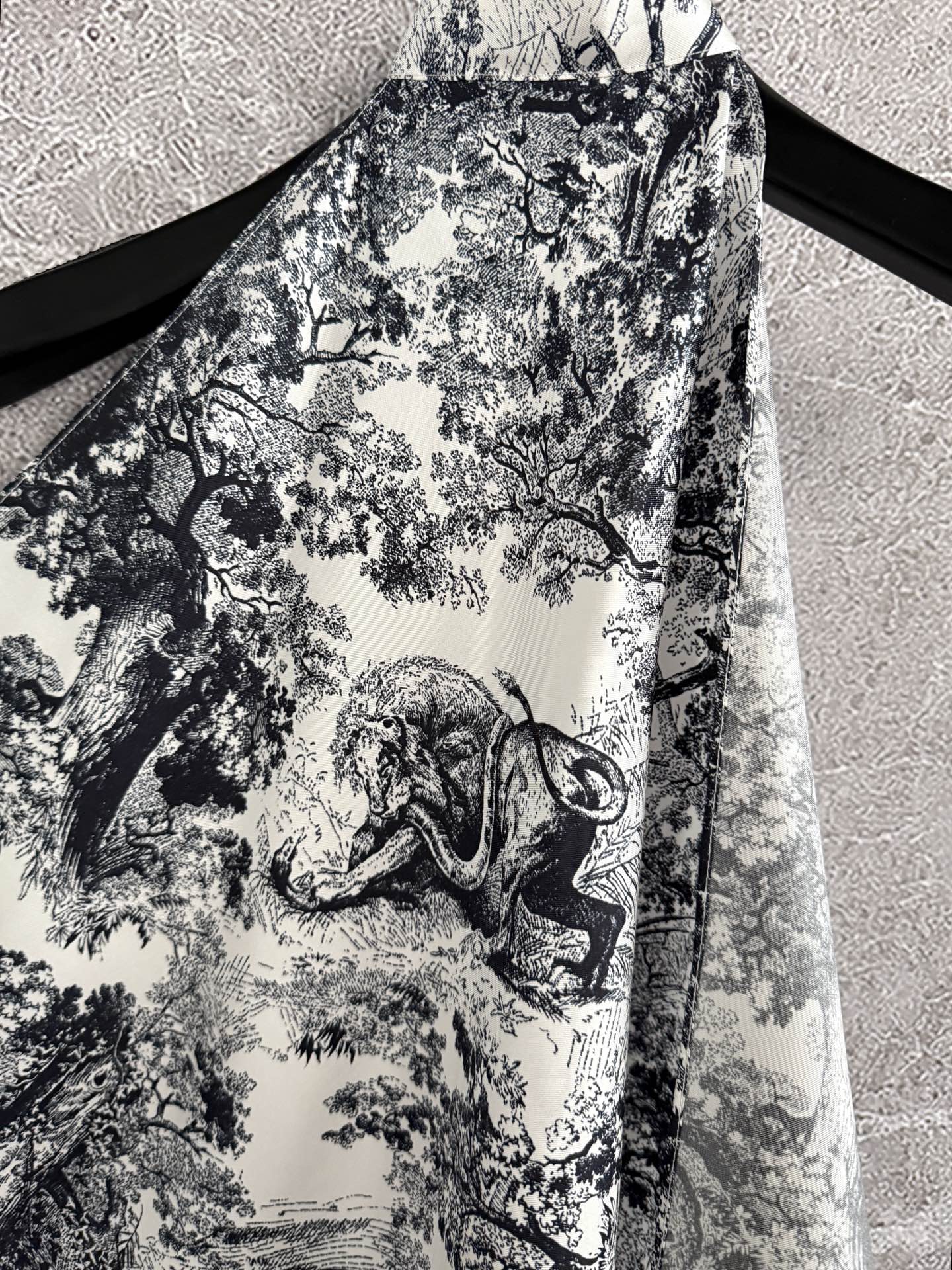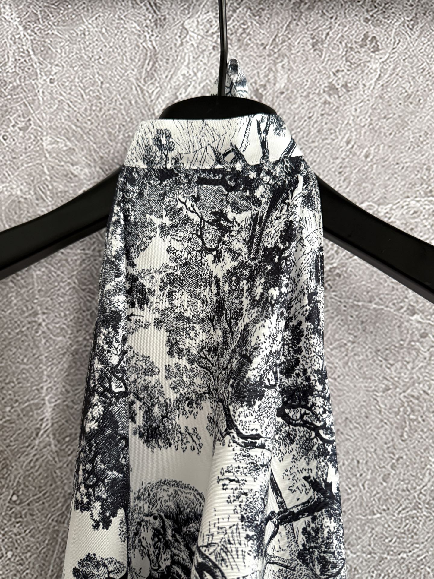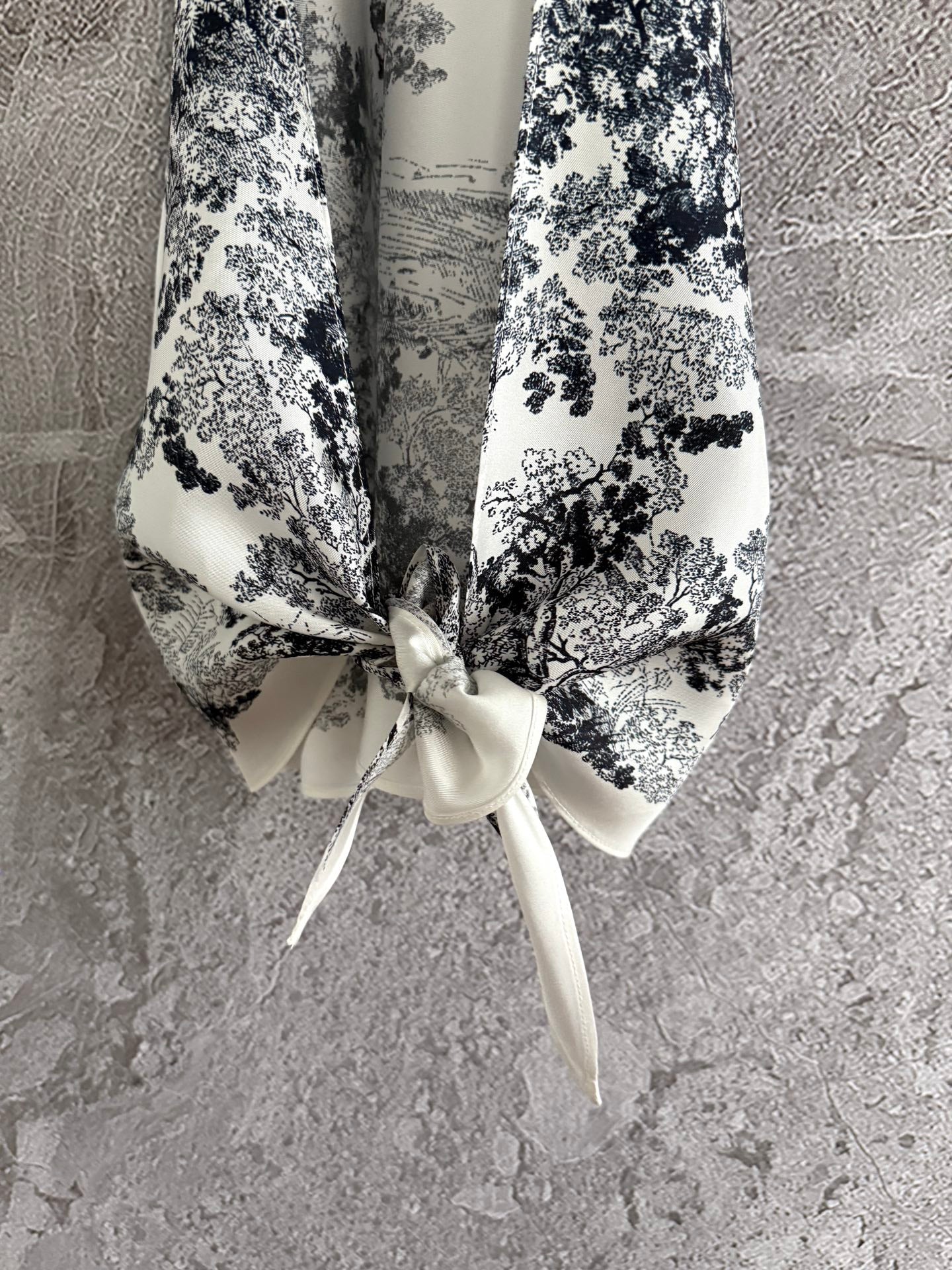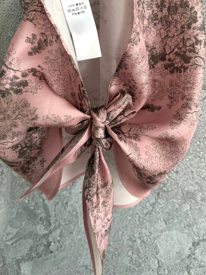 Highlighting the Sauvage Jouy pattern with all-over positioning prints, the 19 Momme heavy twill silk has a very solid texture that cannot be matched by other materials. It is decorated with lace-up methods at the neck and waist, providing more inspiration for wearing. This design is also seen for the first time this year, and it is an outfit that makes your heart beat at first sight.