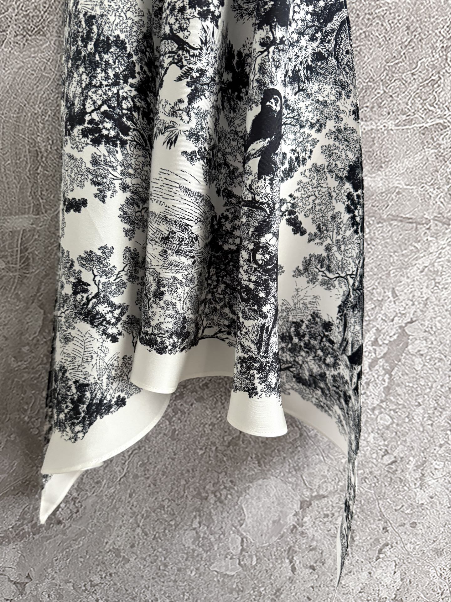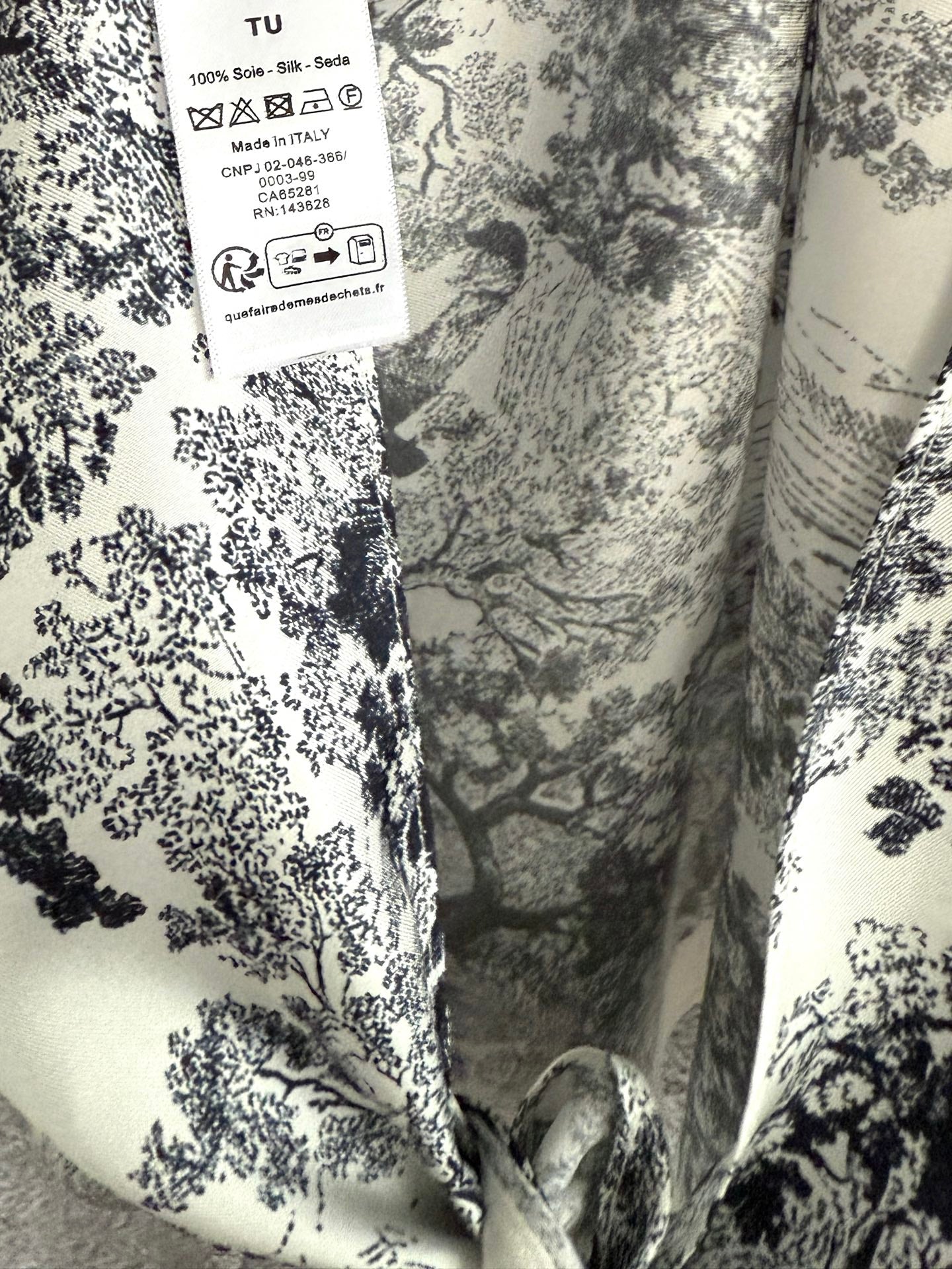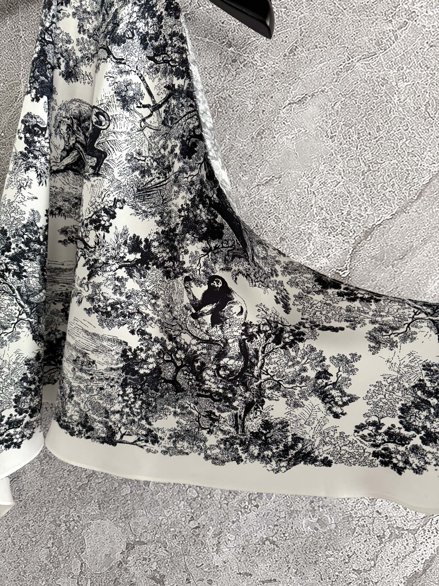Highlighting the Sauvage Jouy pattern with all-over positioning prints, the 19 Momme heavy twill silk has a very solid texture that cannot be matched by other materials. It is decorated with lace-up methods at the neck and waist, providing more inspiration for wearing. This design is also seen for the first time this year, and it is an outfit that makes your heart beat at first sight.
