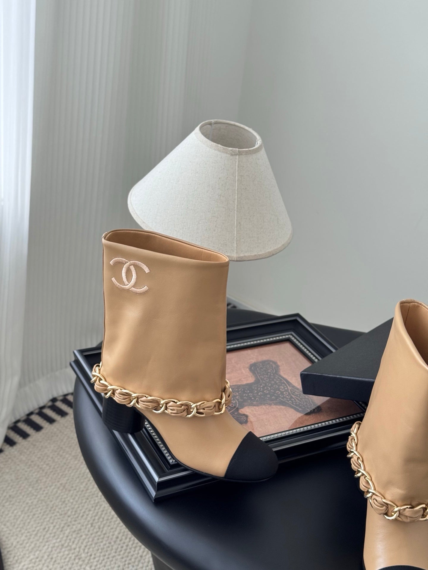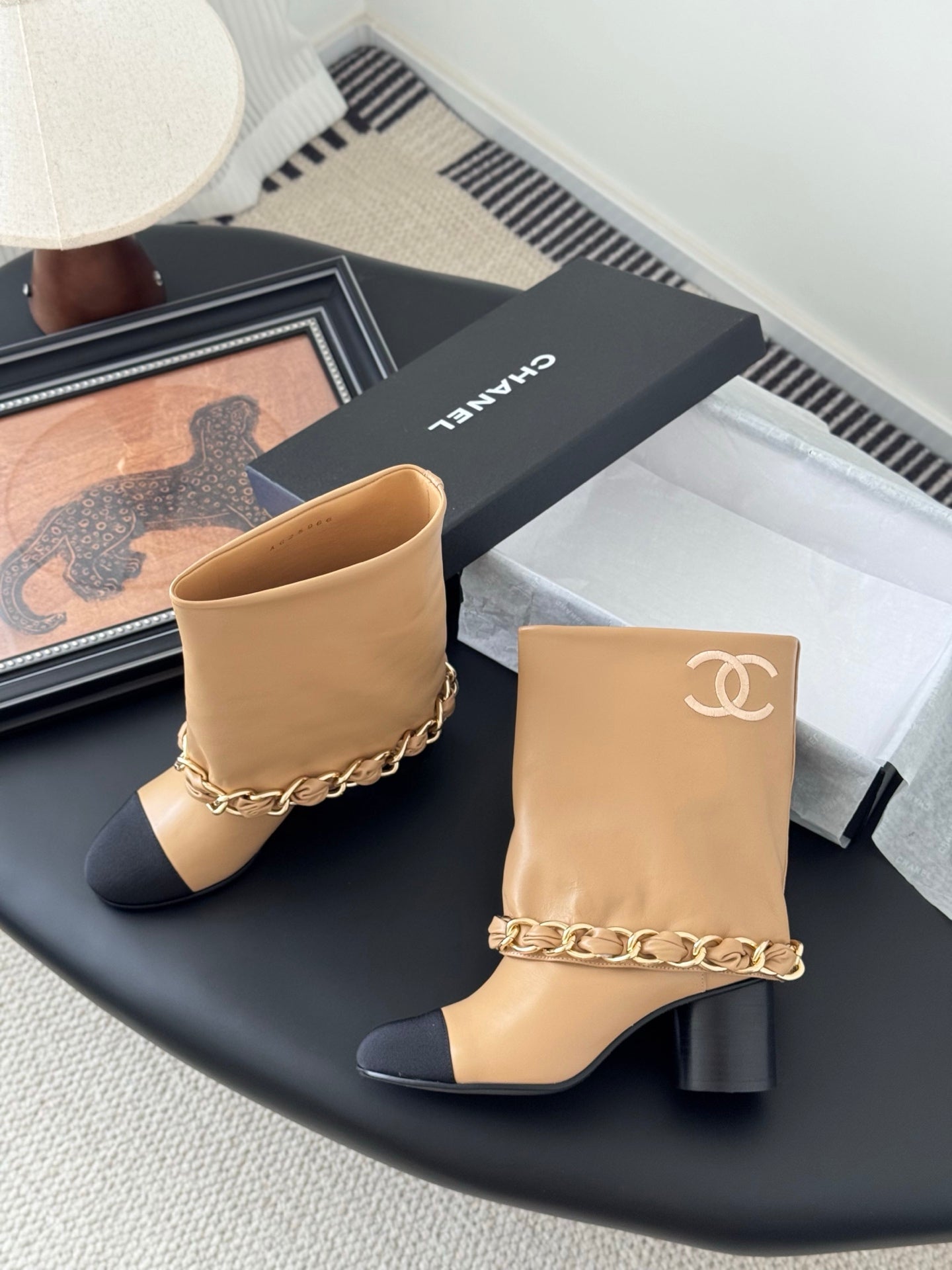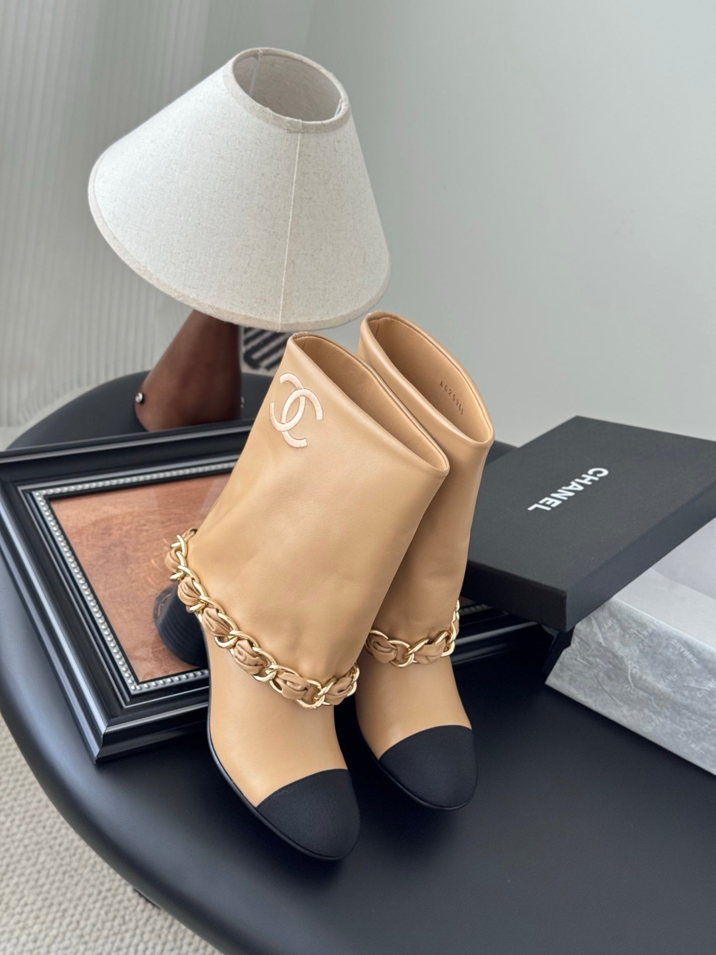 C 25K New chain mid-cut knight boots(KHAKI/WHITE)