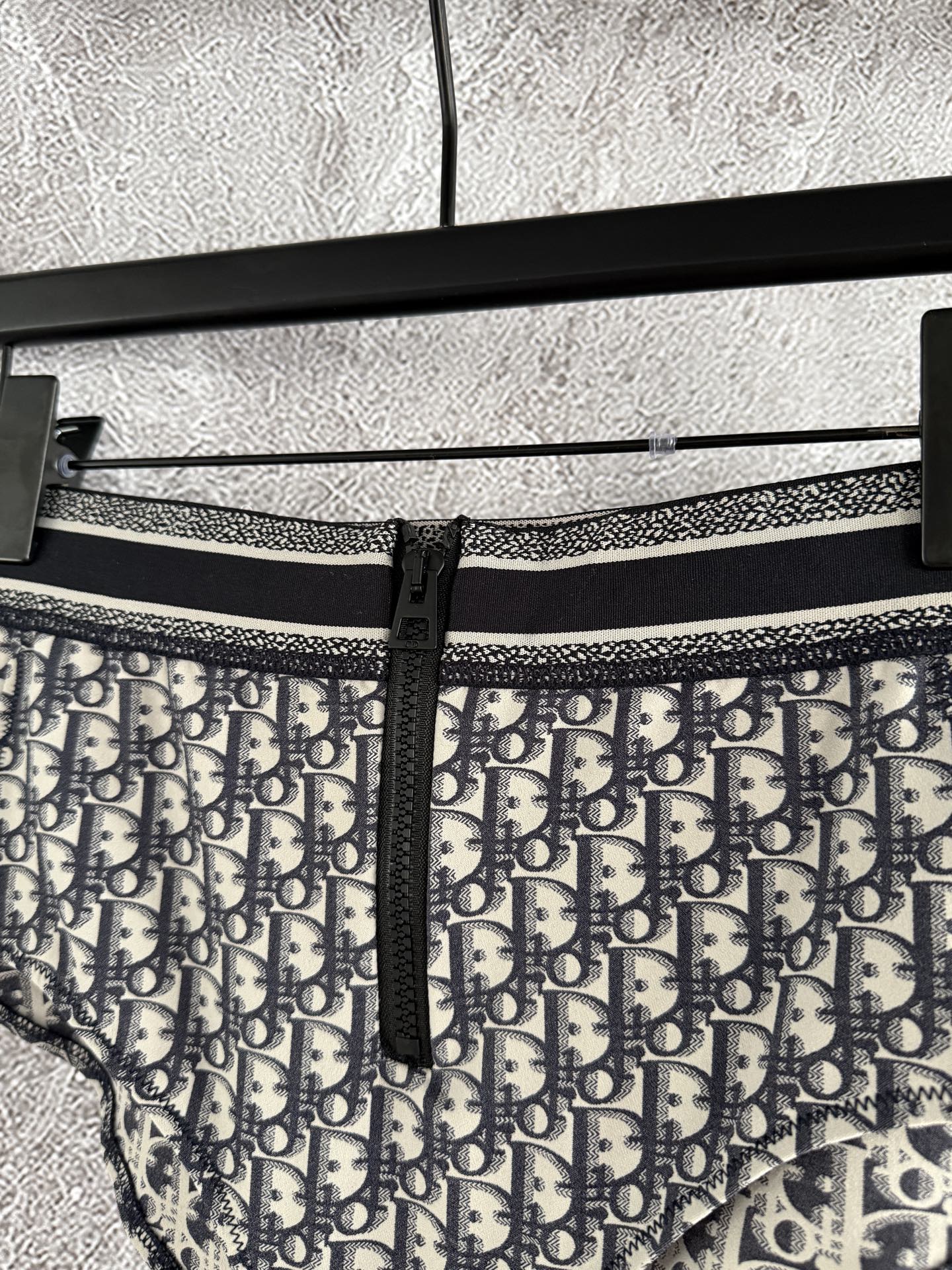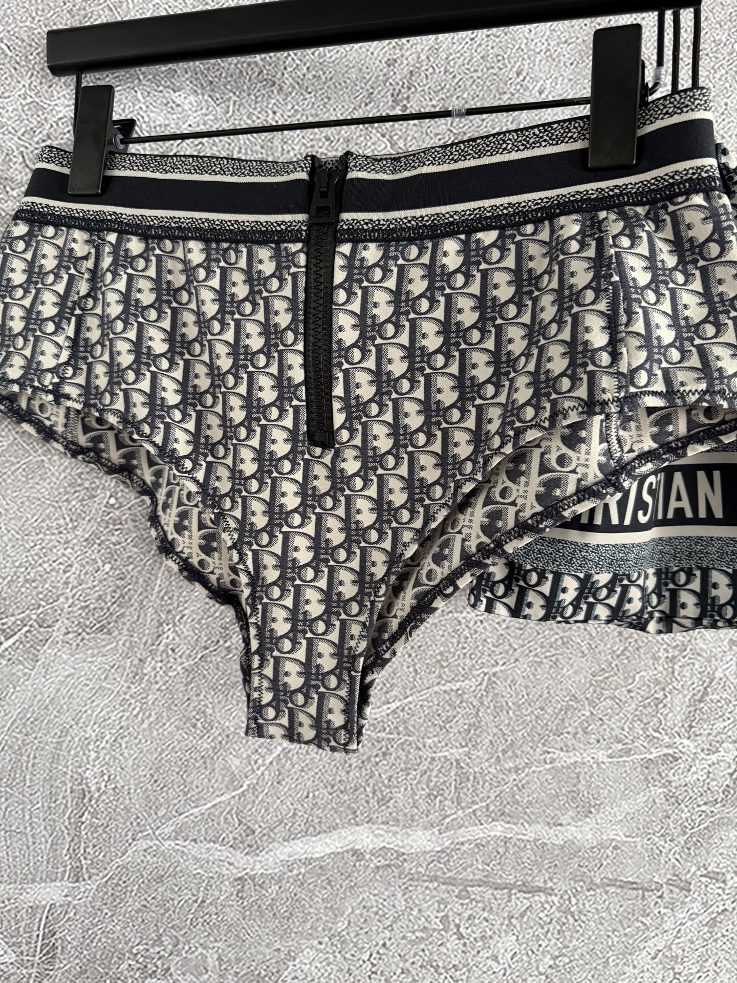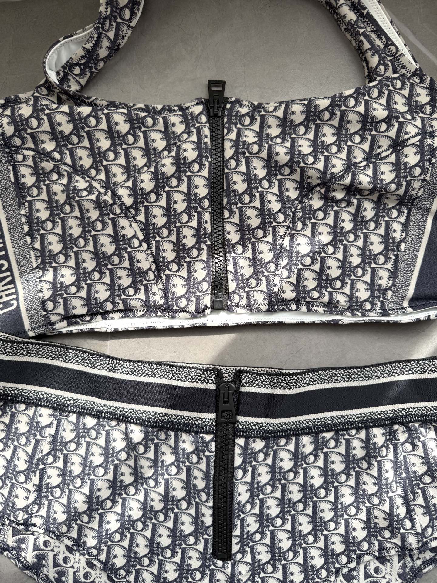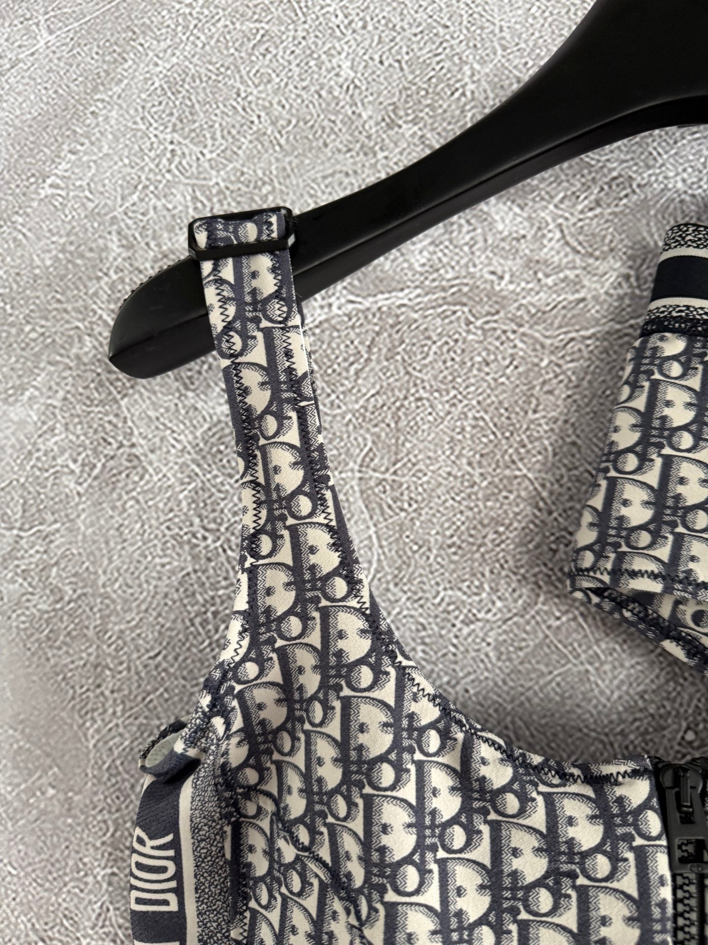 Made from a technical fabric in a fixed weave with a logo embellished on the side in one piece for contrast, top and bottom zipper closure, high-waisted pants designed with a classic signature elastic webbing on the back, and a self-contained ambient collection that makes for effortless styling whether it's as an undershirt or a swimsuit.