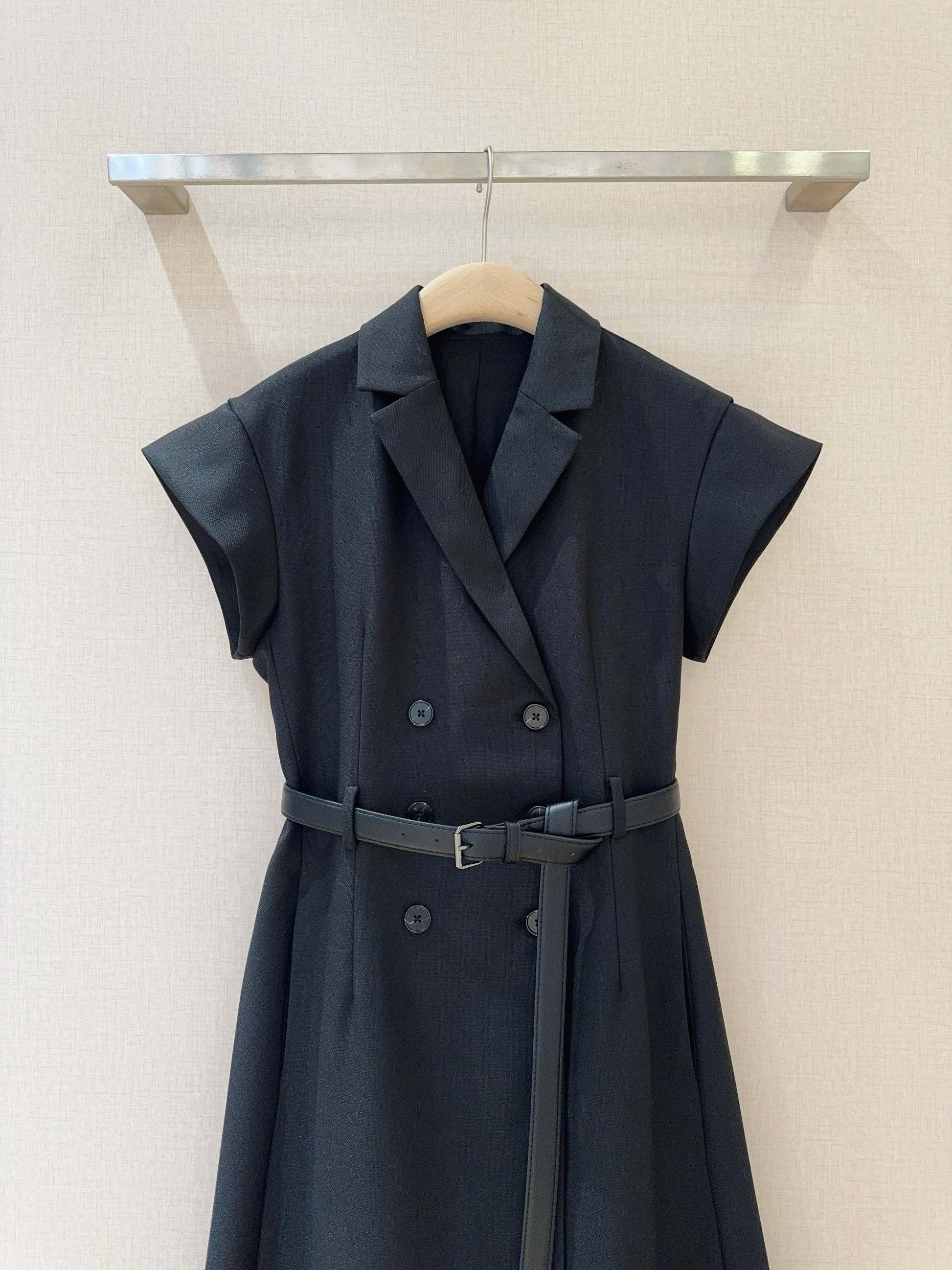 Double-breasted and neatly lapels, capable and cool. The short-sleeved design is suitable for spring and summer, and the black belt brings out the exquisite curves. There are pockets on both sides, which are both elegant and aura, and can easily move around in the workplace and social occasions.