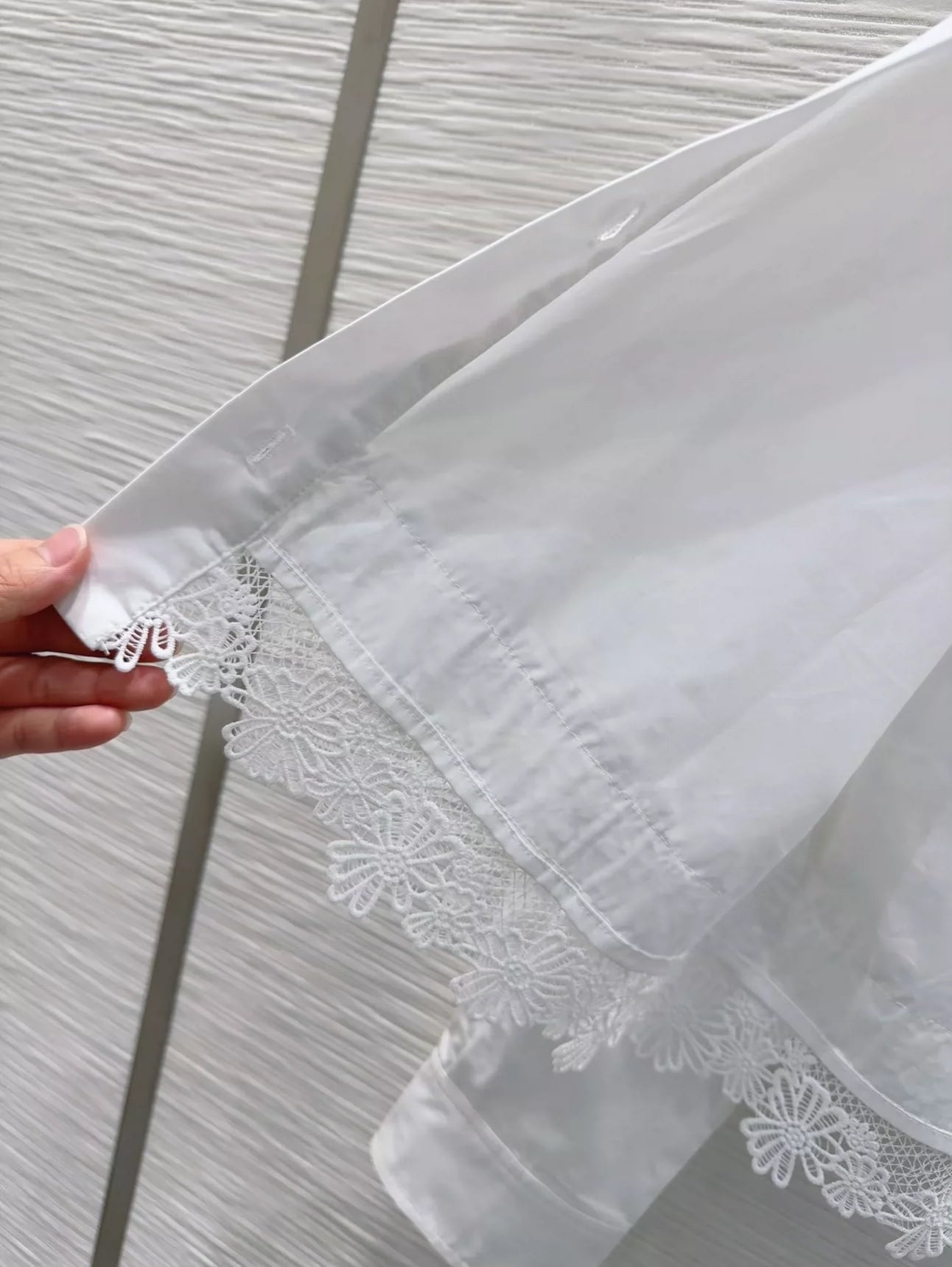 LO 25 New Pocket Splicing Lace Long Sleeve Shirt