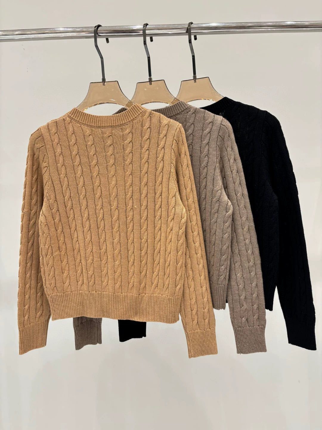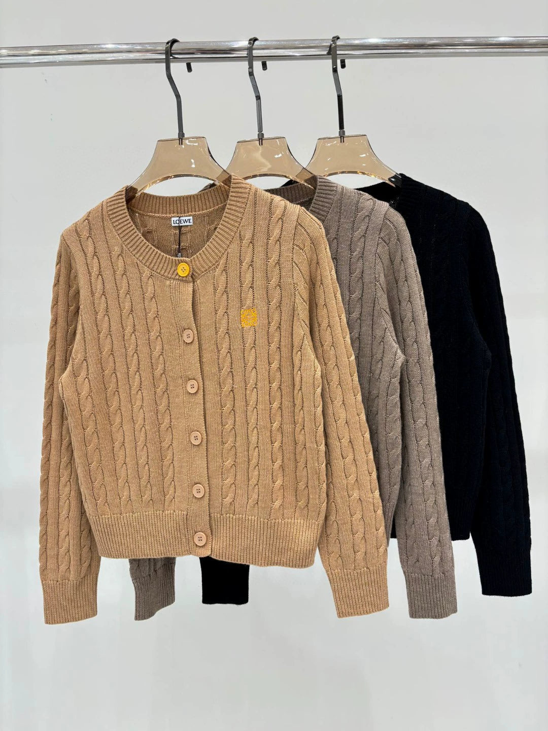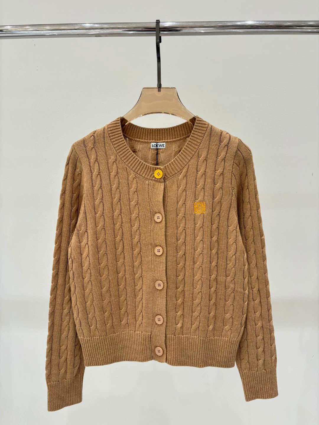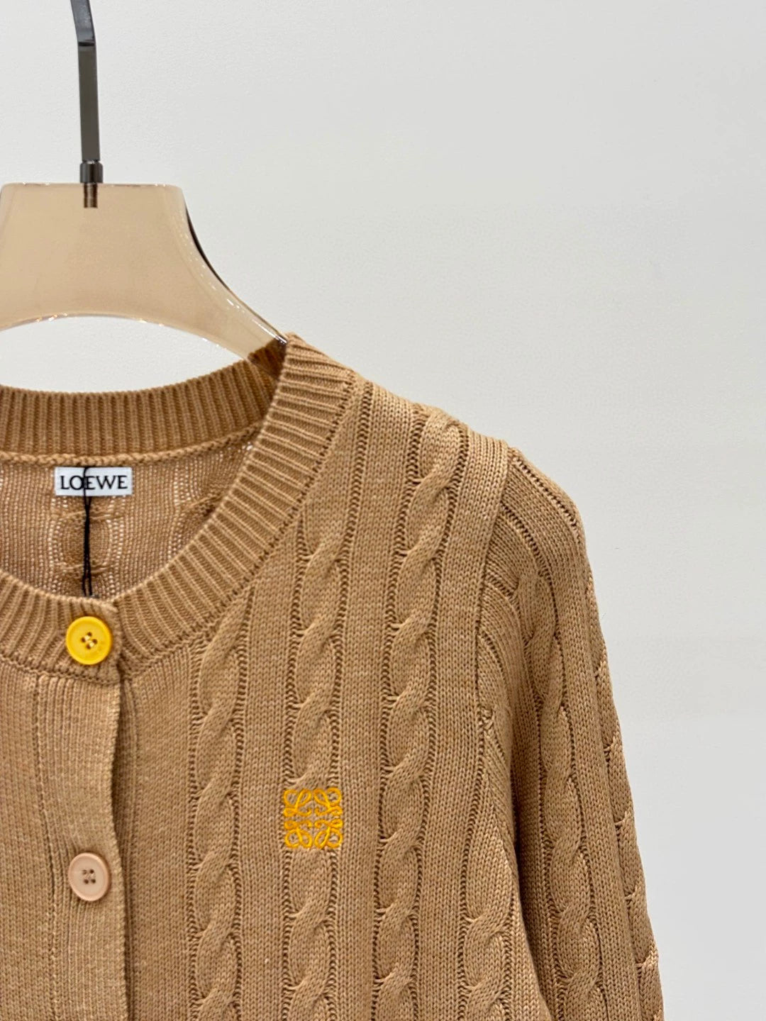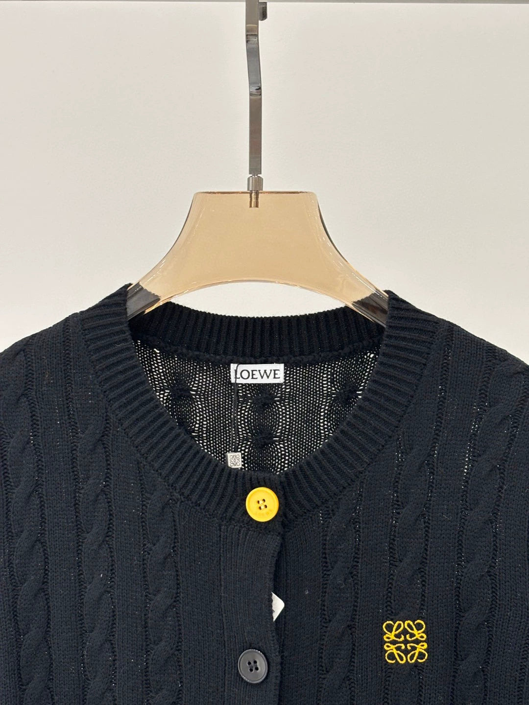 LO 25 Spring and Summer New Round Neck Letter Logo Embroidered Button Knitted Cardigan