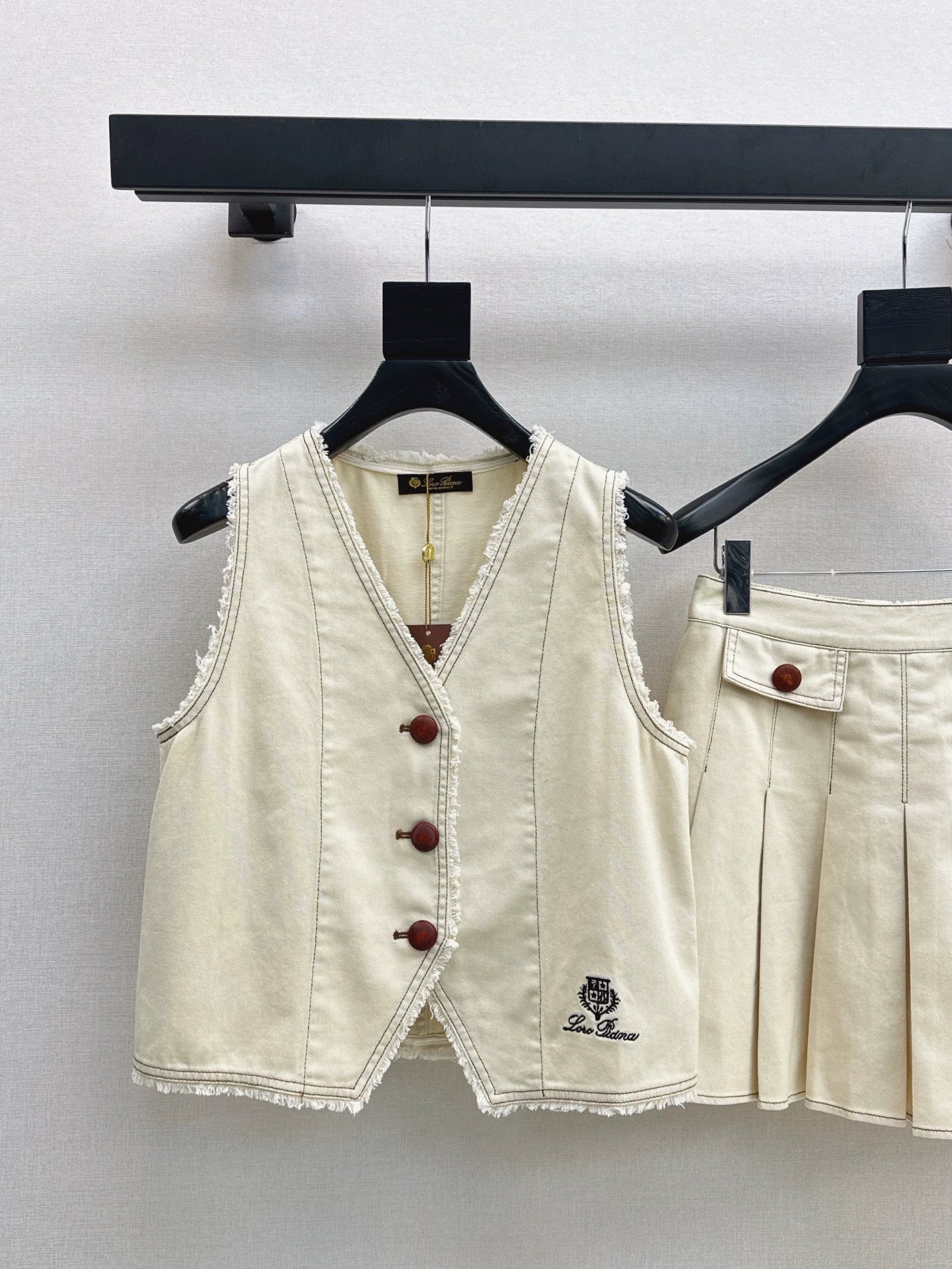 Lor 25 spring and summer new suit Sleeveless V-neck denim vest + age-reducing pressed pleated half skirt