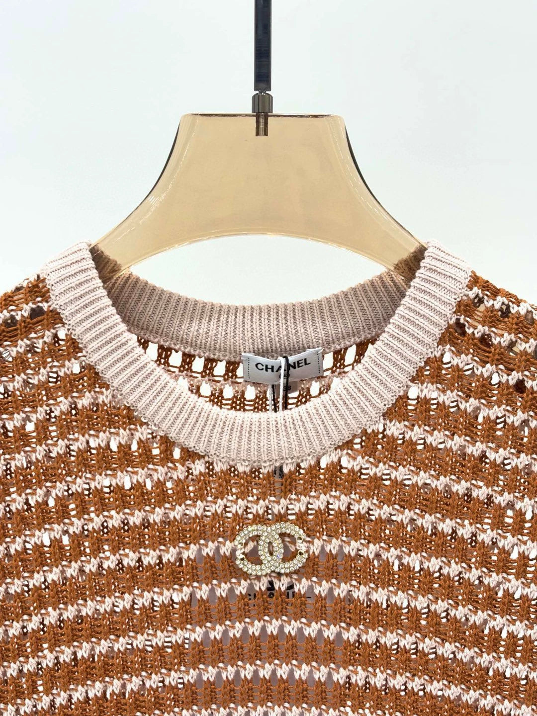 C 25 Summer New Round Neck Letter Logo Diamonds Logo Hollow Out Casual Knit Short Sleeve