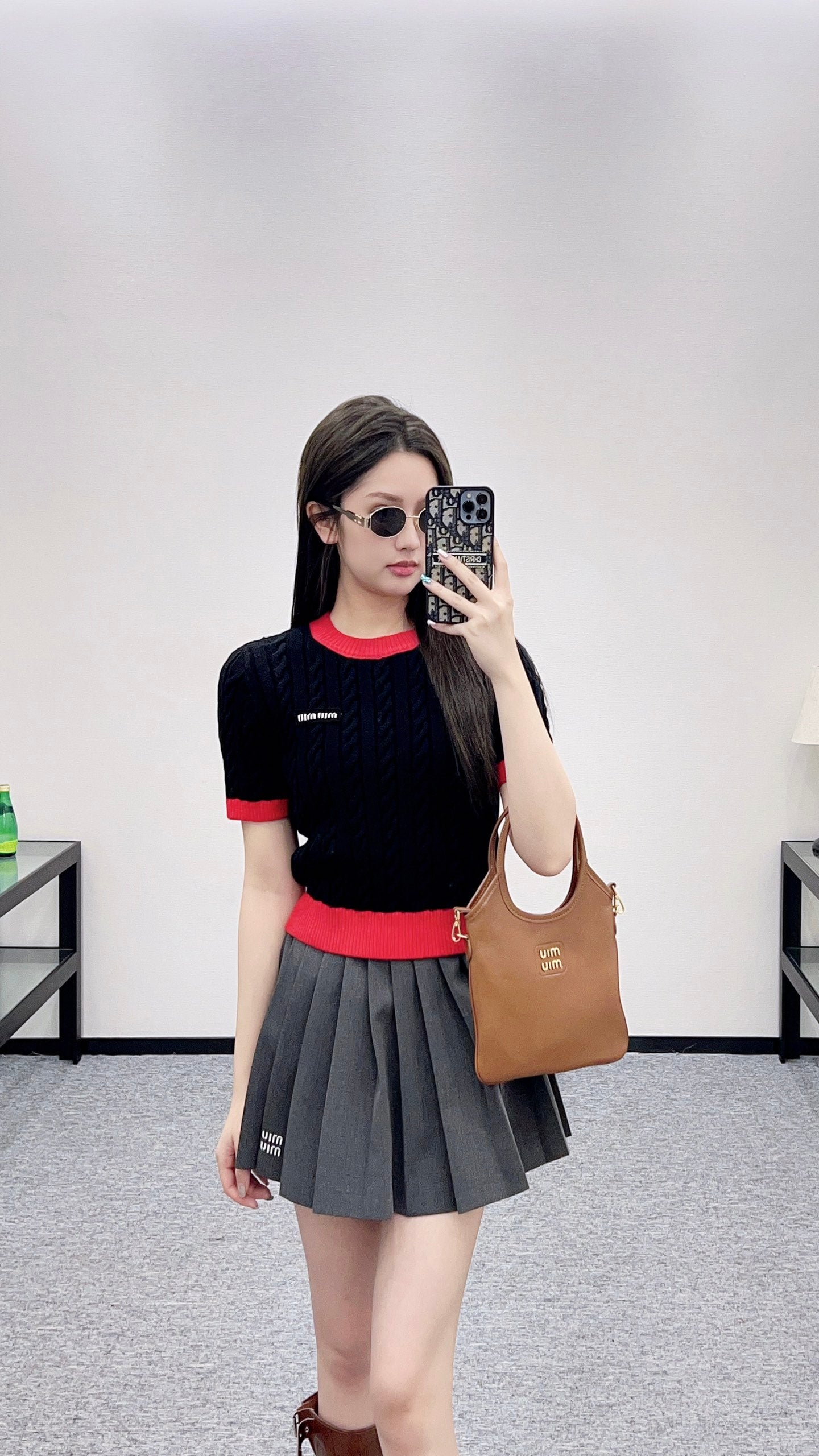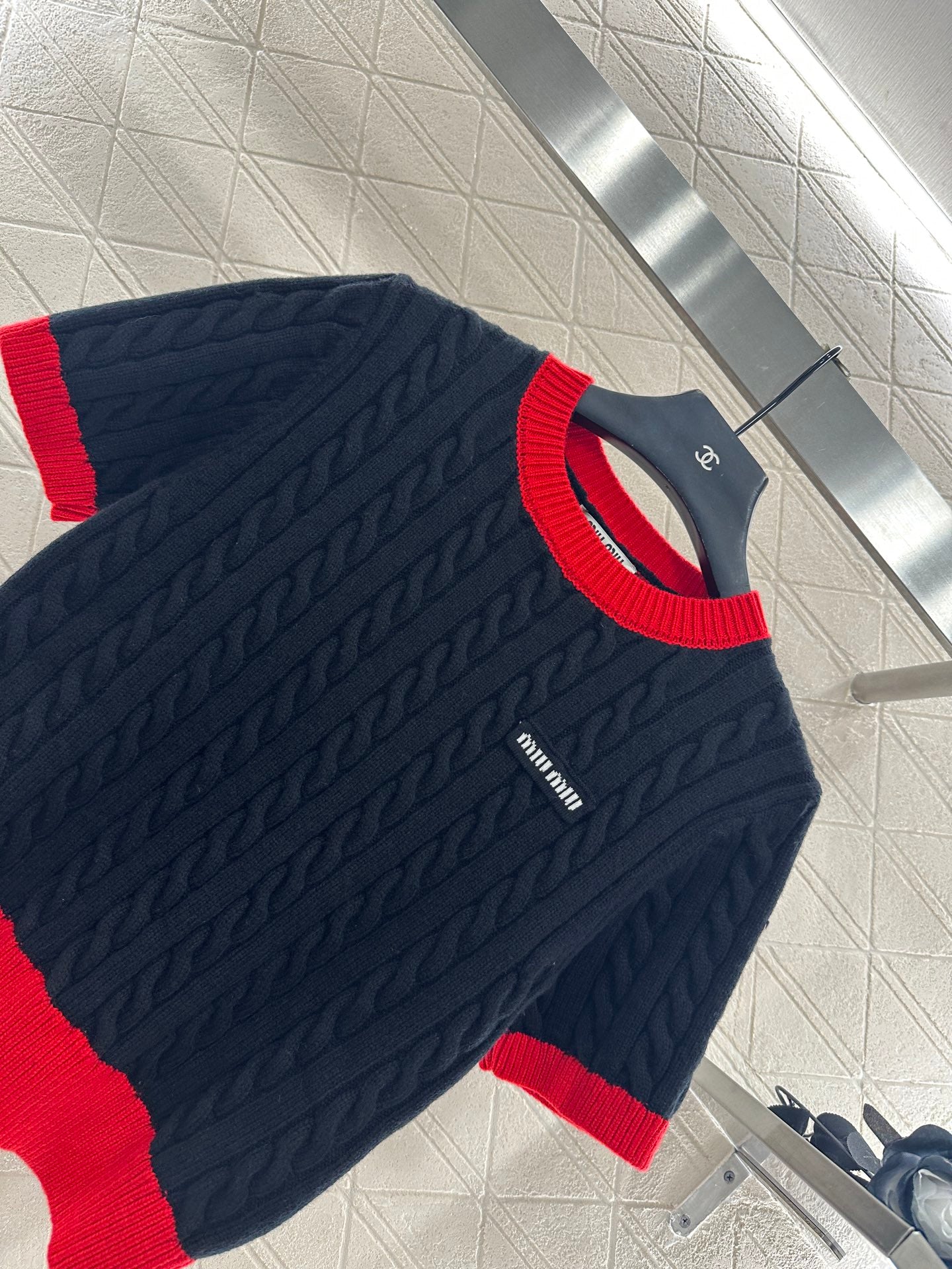 Mi 25 Wool Fried Dough Twists letter knitting short sleeve