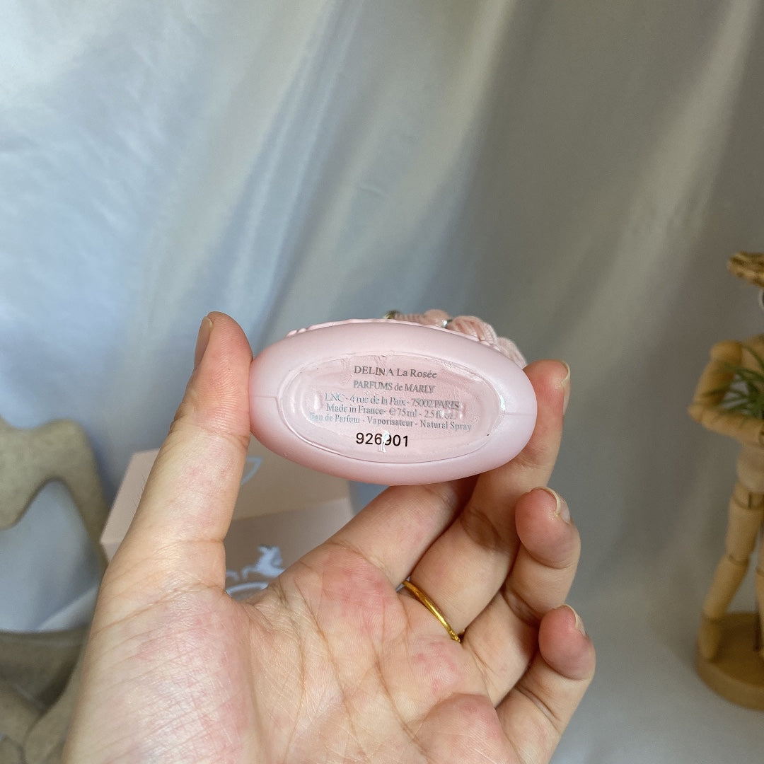 The rich and complex aroma of Turkish rose, lily of the valley, and peony flowers intertwines with notes of lychee, rhubarb, bergamot, and nutmeg. A base of cashmere wood and musk gives Delina its layered depth and a subtle, mysterious fragrance.