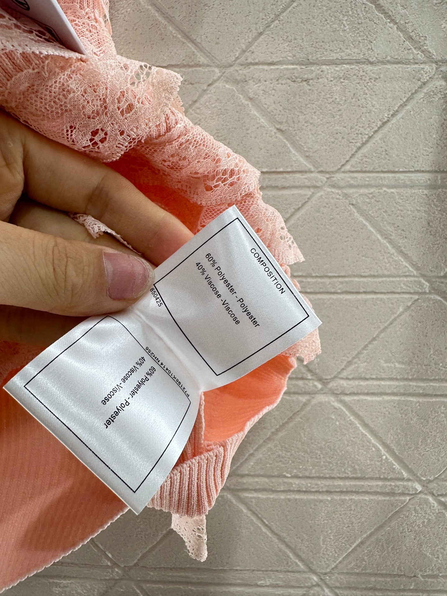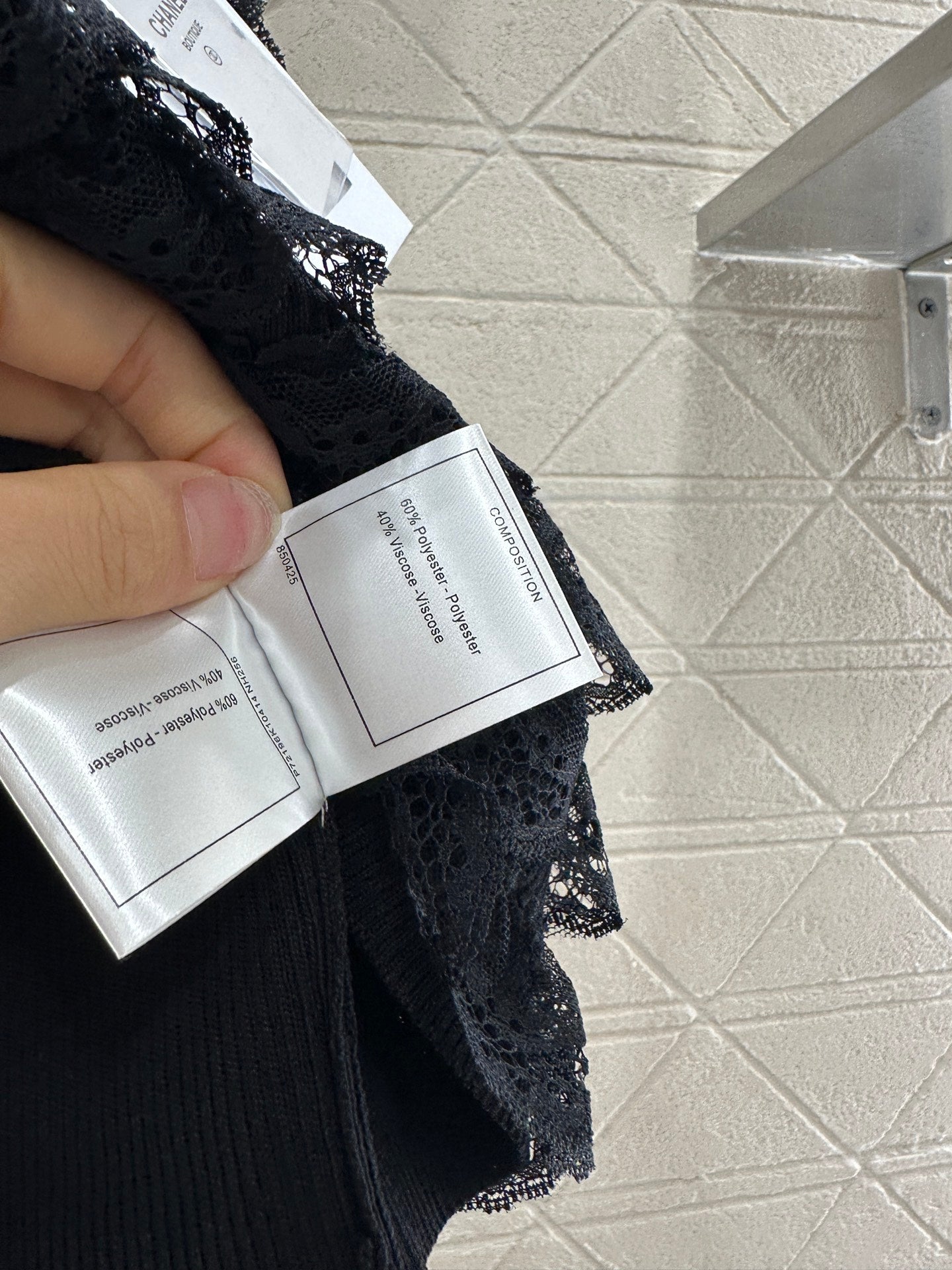 Customized YB imported yarn weaving, high-quality texture, comfortable and skin-friendly, camisole, fine hook texture design throughout, double C logo with rhinestones on the chest, to add brand style, Dongsi lace below the chest to create highlights, multiple cake layers, to add sweetness, to highlight the overall sense of the outfit, elasticity makes it more exquisite, to make you look thinner, to show the relaxed tone, light luxury and fashionable temperament, can be worn alone or layered, the first choice for fashionable wear in all seasons
