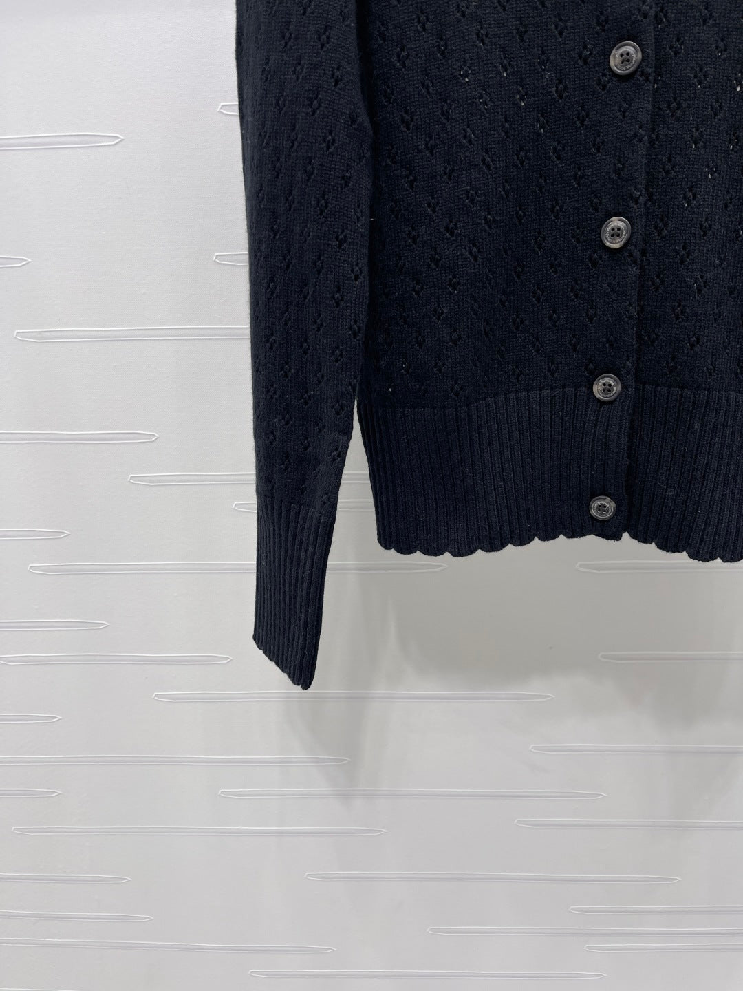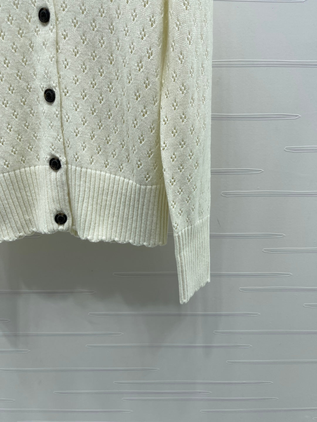 Custom imported wool yarn weaving, full of texture, single row of exquisite button cardigan tailoring, all-over floral hollow texture interwoven, with lace on the neckline and wavy lace on the cuffs, strong sweet and pure style, playful style, age-reducing, richer visual effect, easy to control for daily travel or parties
