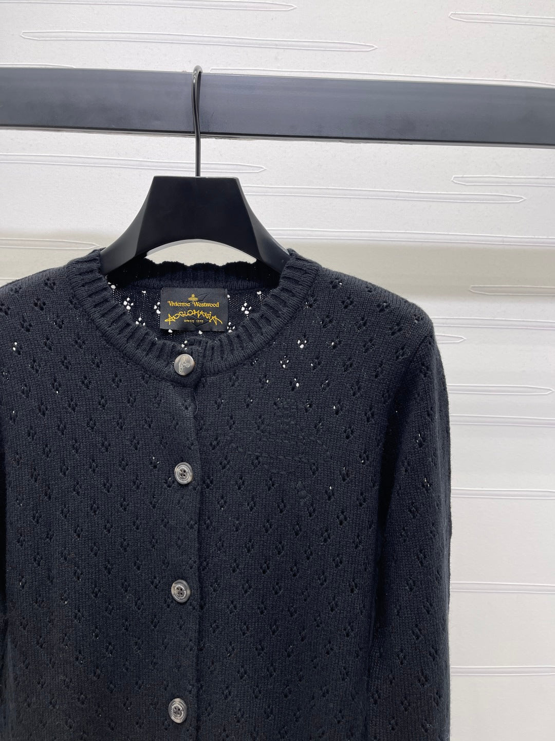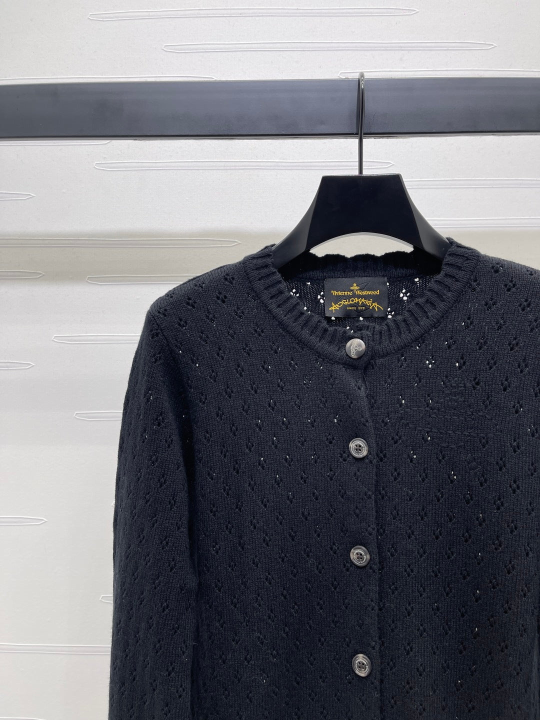 2025 Early Autumn New Floral Hollow Round Neck Long Sleeve Cardigan