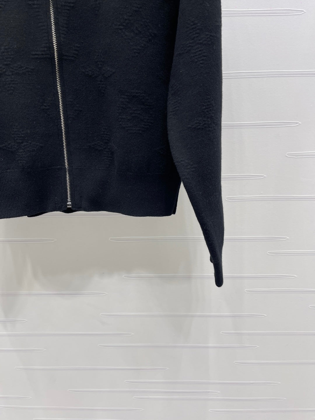 Custom imported wool material with superior texture. Stand collar zipper cardigan cut, easy to put on and take off, windproof and cold-resistant. The overall shape is advanced and crisp. The all-over jacquard logo pattern highlights the advanced movement and fashion tone. The versatile card color regular version is very suitable for autumn and winter