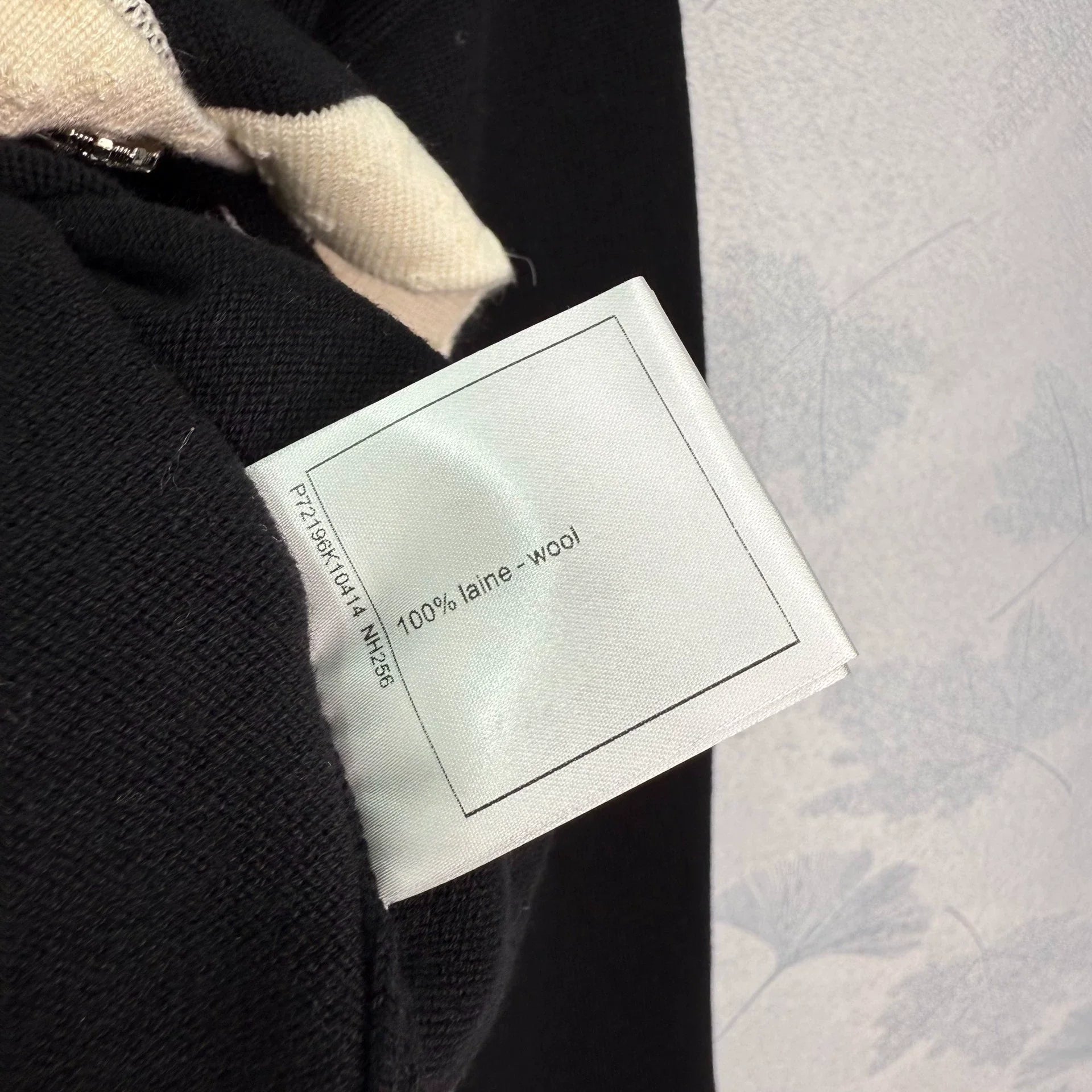 Customized YB wool yarn weaving, high-quality texture, comfortable and soft, V-neck knitted cardigan cut, fine crochet texture throughout, pure black with white threaded edging