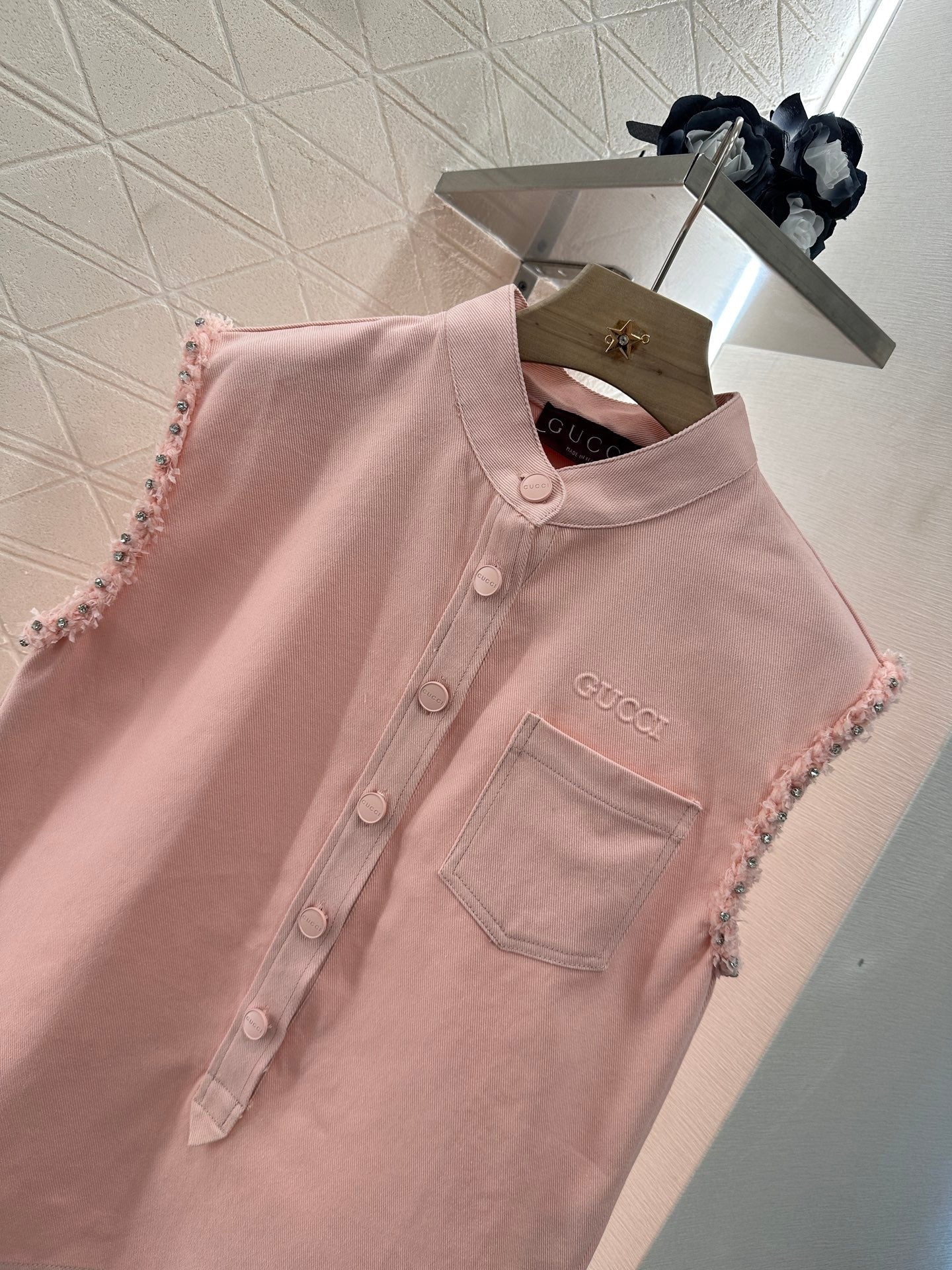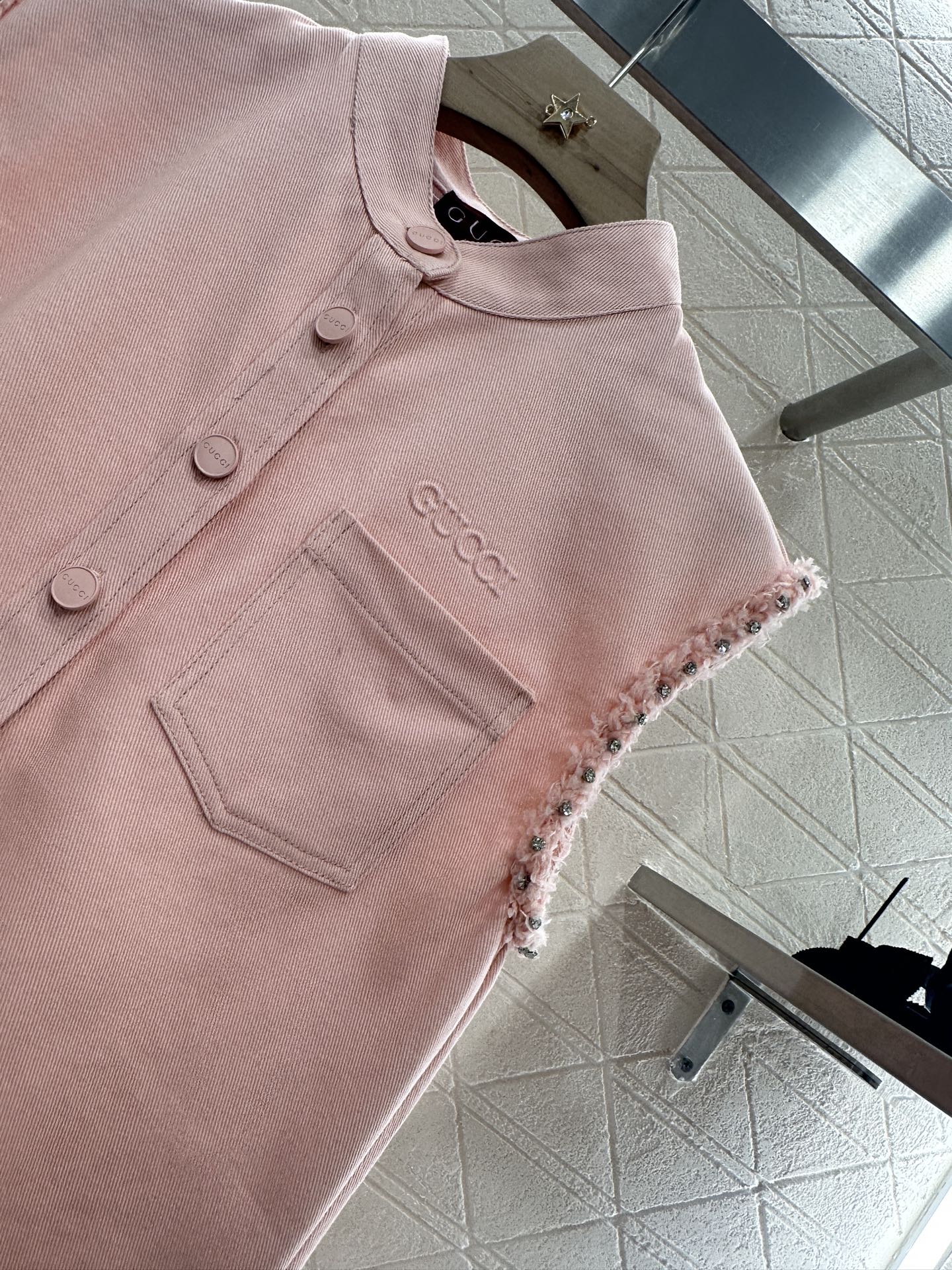 Customized YB twill cotton thin denim material, slightly elastic and comfortable, vest top shorts set, top half-open button, neat silhouette, cuffs beaded and hemmed, full of design sense, three-dimensional cutting, side slits, accommodating body shape, adding a casual and handsome atmosphere, complementing the brand logo on the chest, presenting an exclusive refreshing and casual style, matched with the same series of shorts, the logo hemming details echo, easily highlighting the charm of long legs, the whole set is relaxed and fashionable, and it is also great to match separately