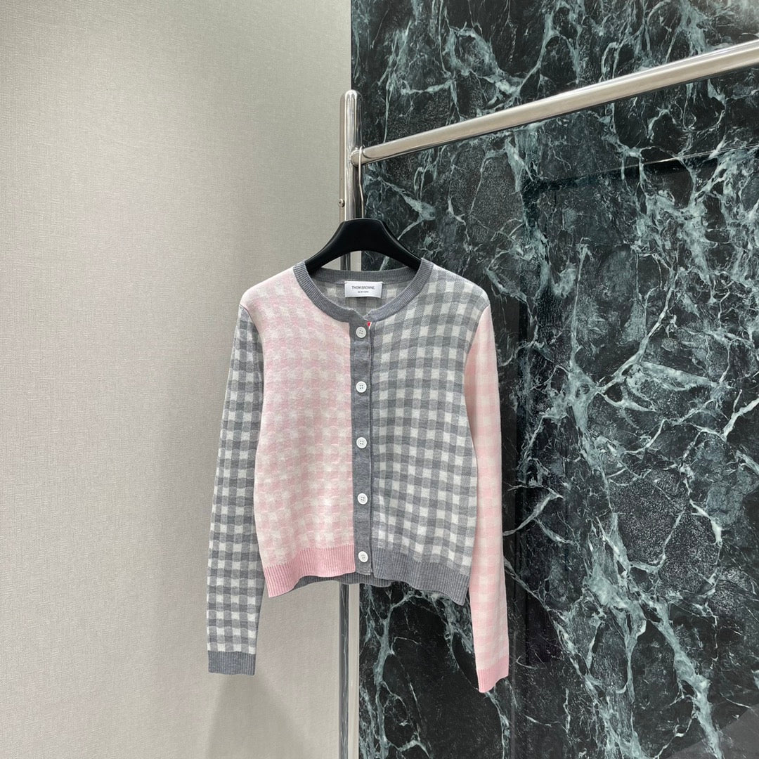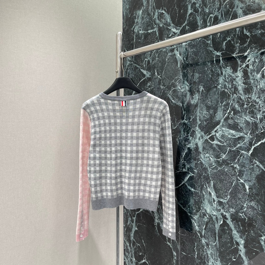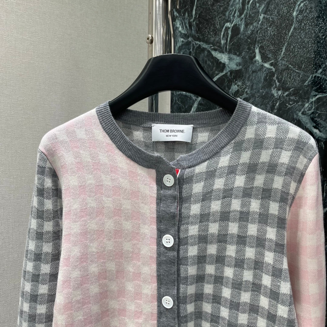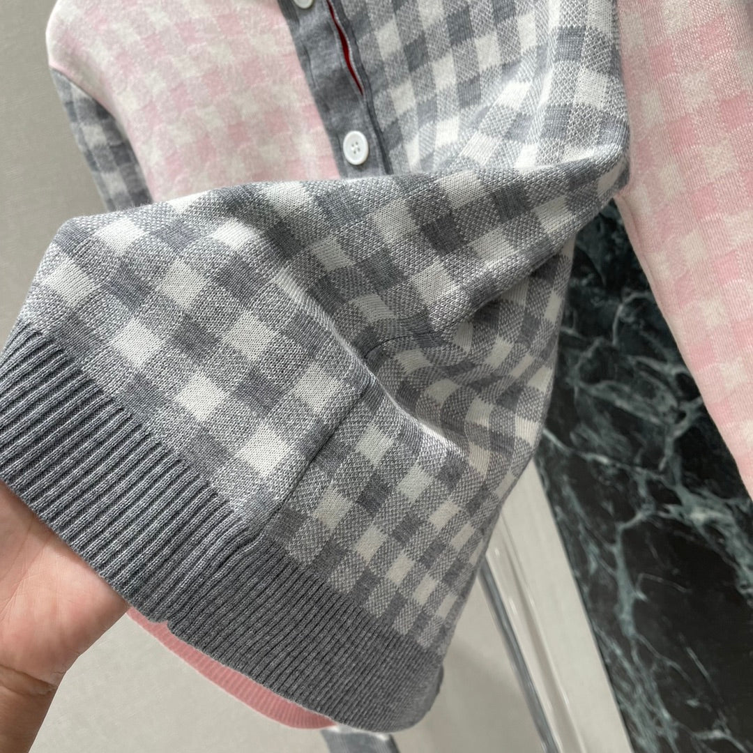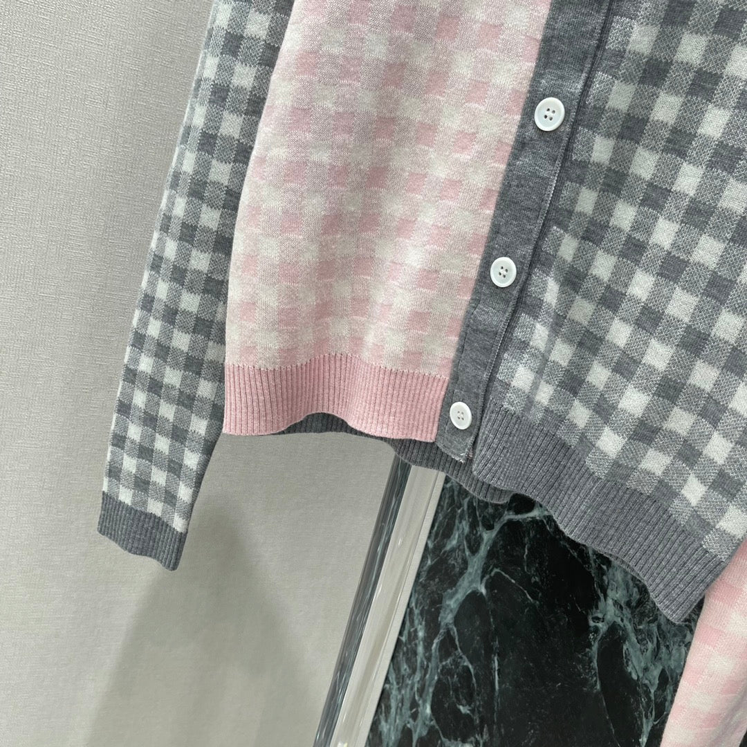 25 Early Autumn New Color-blocked Plaid Knitted Cardigan