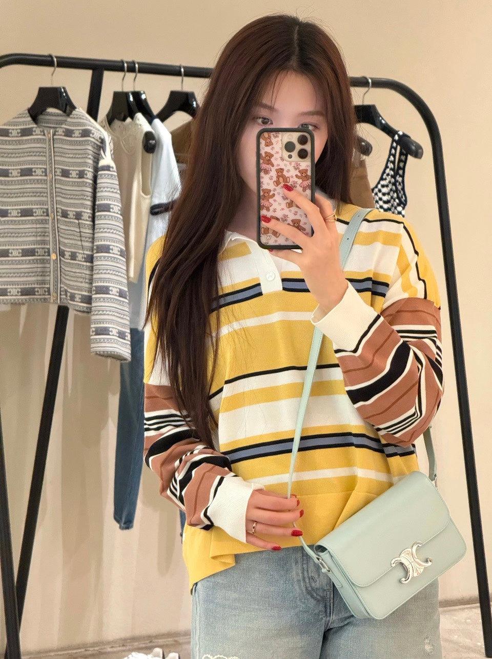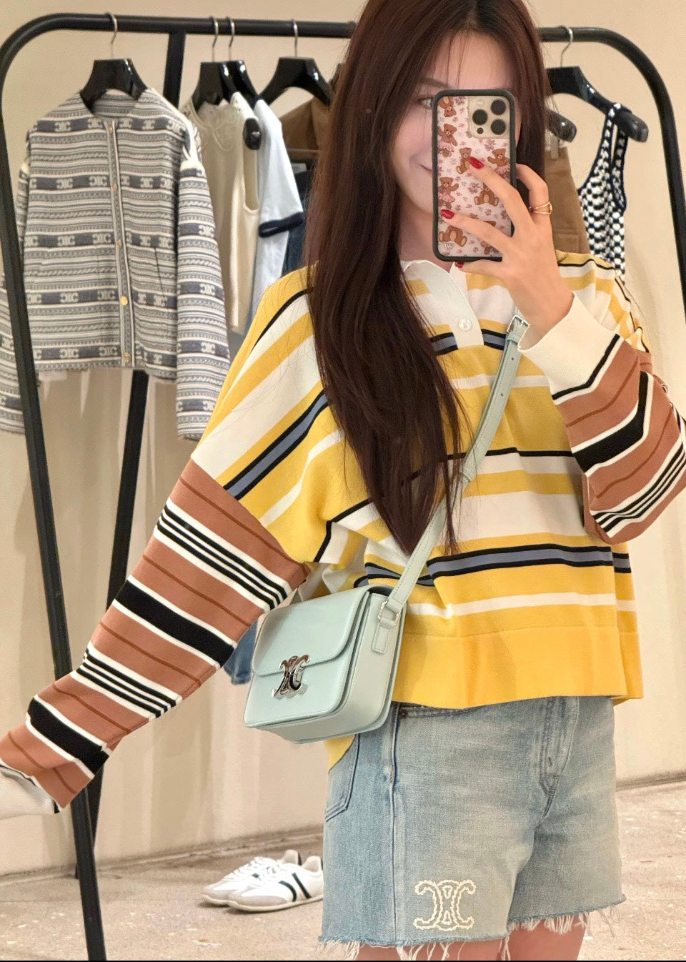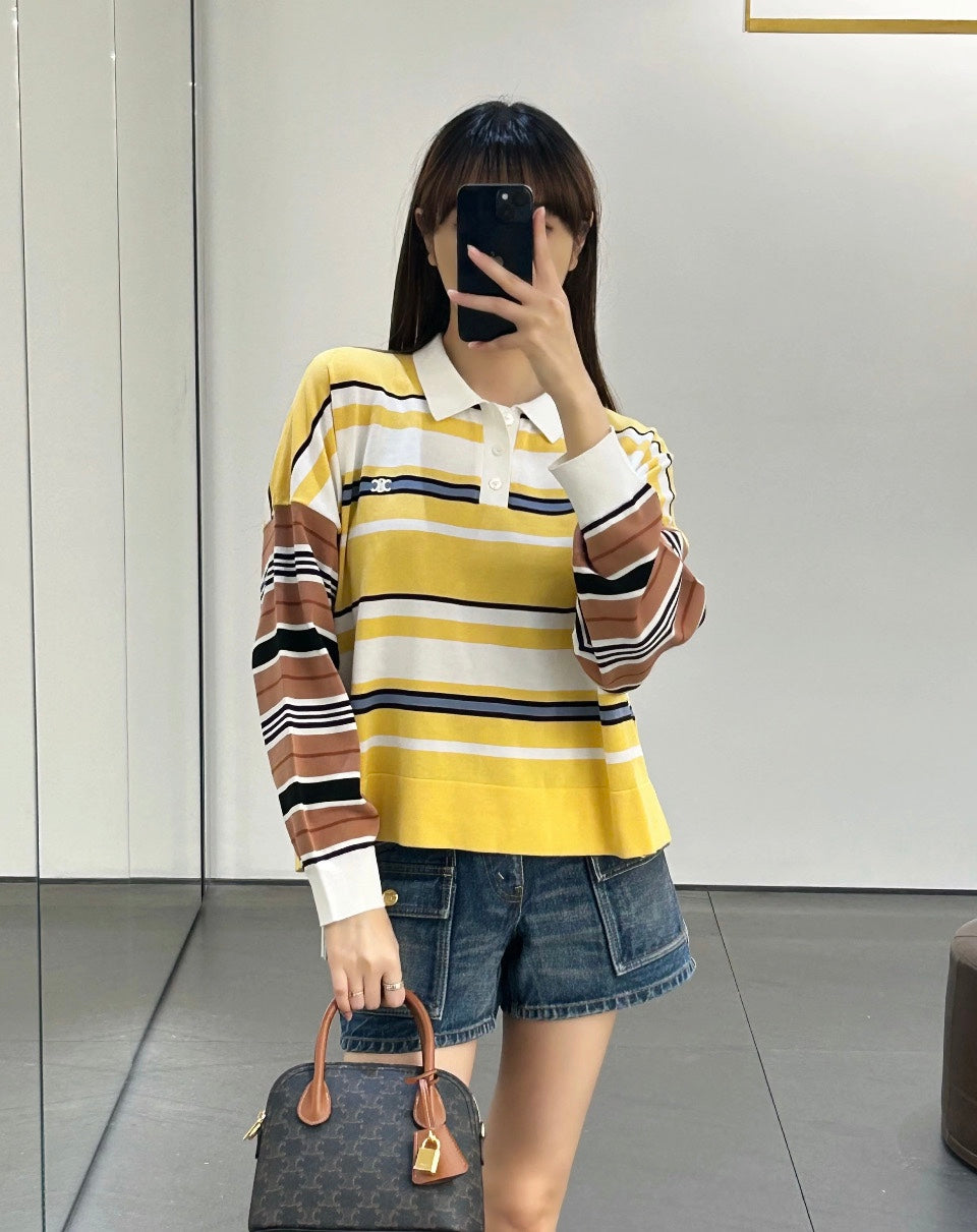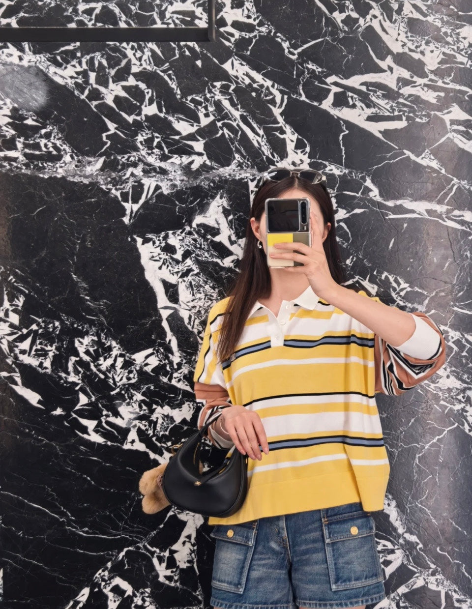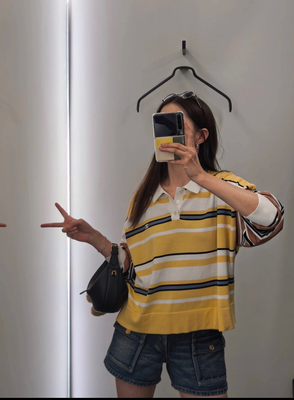 The classic contrasting color polo collar makes you look younger, and the preppy style is the same as that of celebrities. The embroidered brand logo l0go shows unique taste in a low-key manner. The bright striped elements add visual agility and rhythm. The upper body is particularly concealing and slimming, and the style is super good.