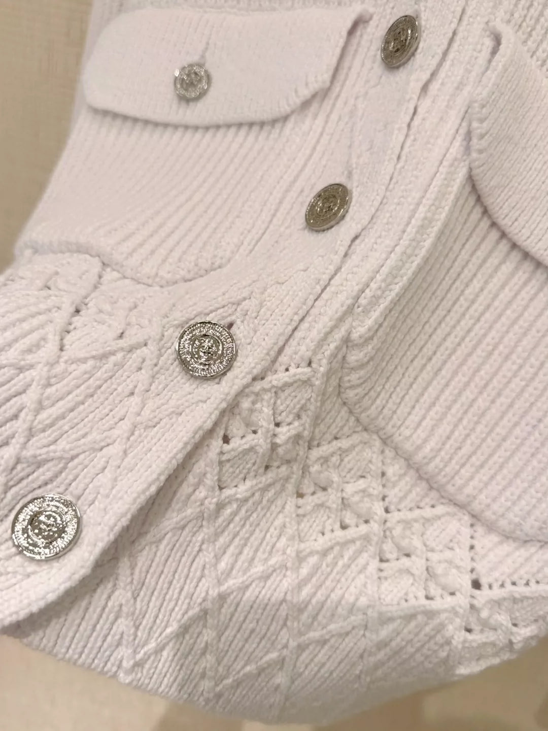 25 Early Autumn New Hollow Three-Dimensional Jacquard Double Pocket Round Neck Knitted Cardigan