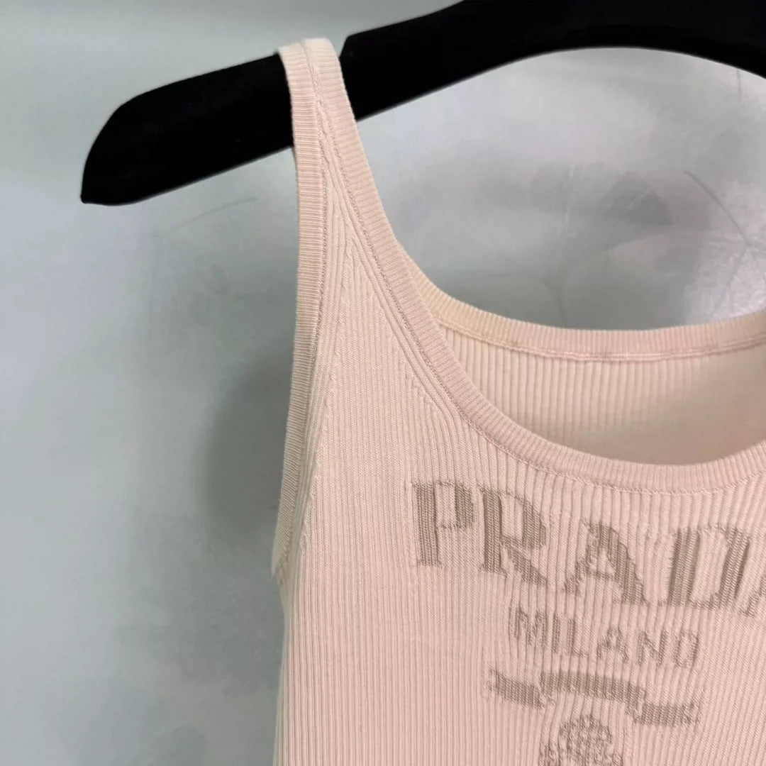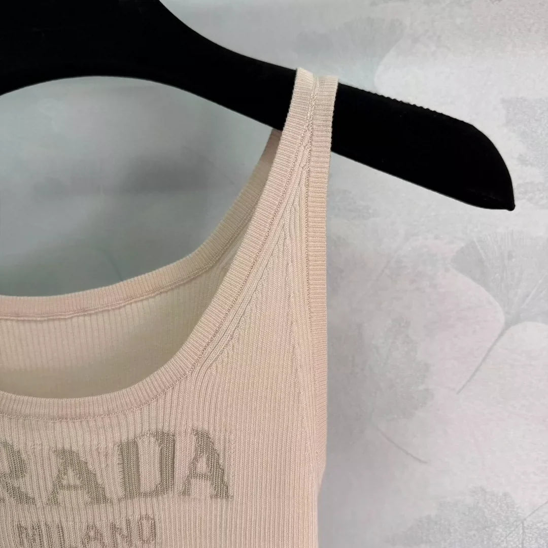 2025 summer new letter jacquard high elastic age-reducing slim fit all-match vertical striped knitted vest