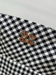 m 25 Summer new black and white checkered leather letter suspender skirt