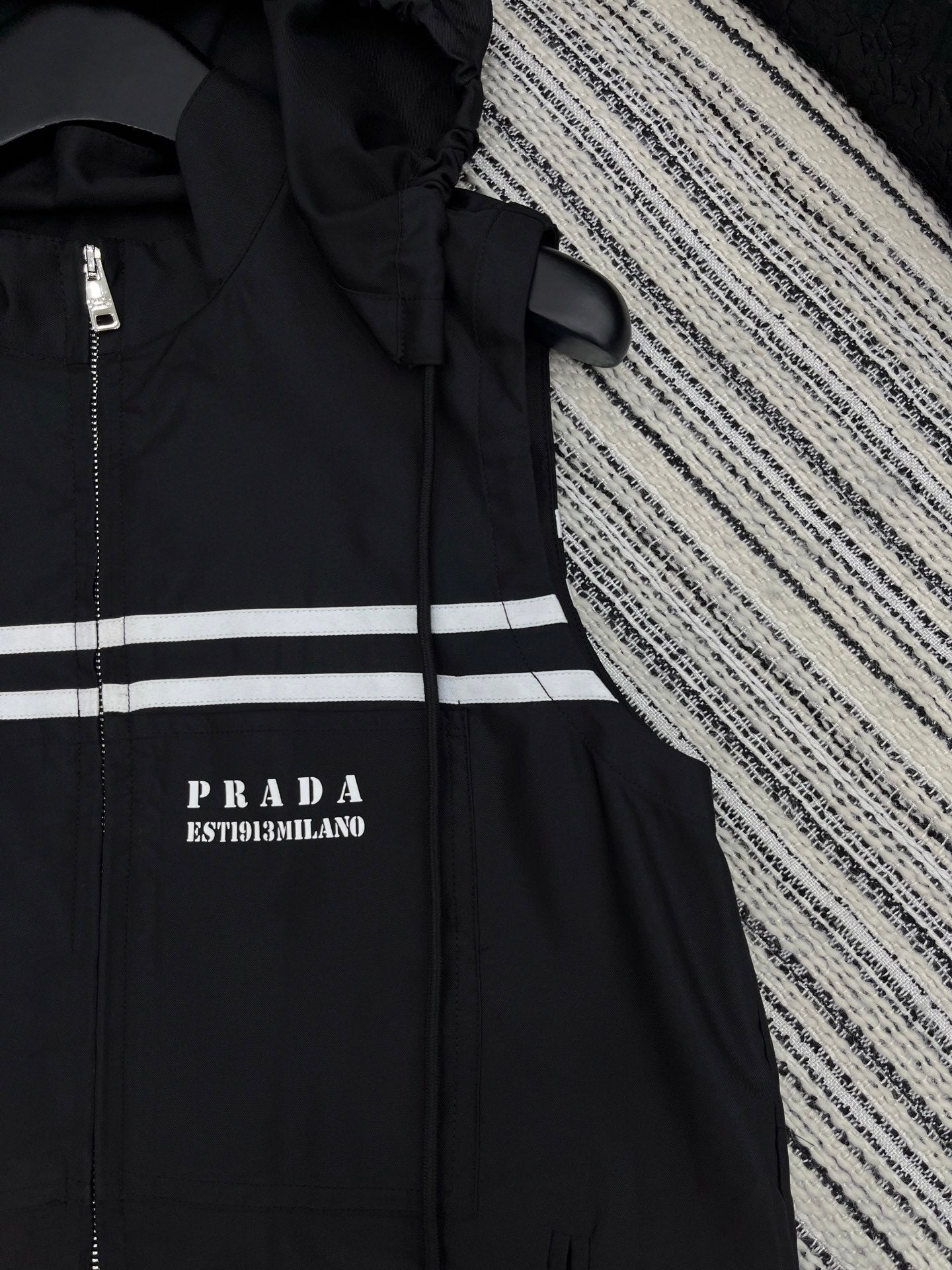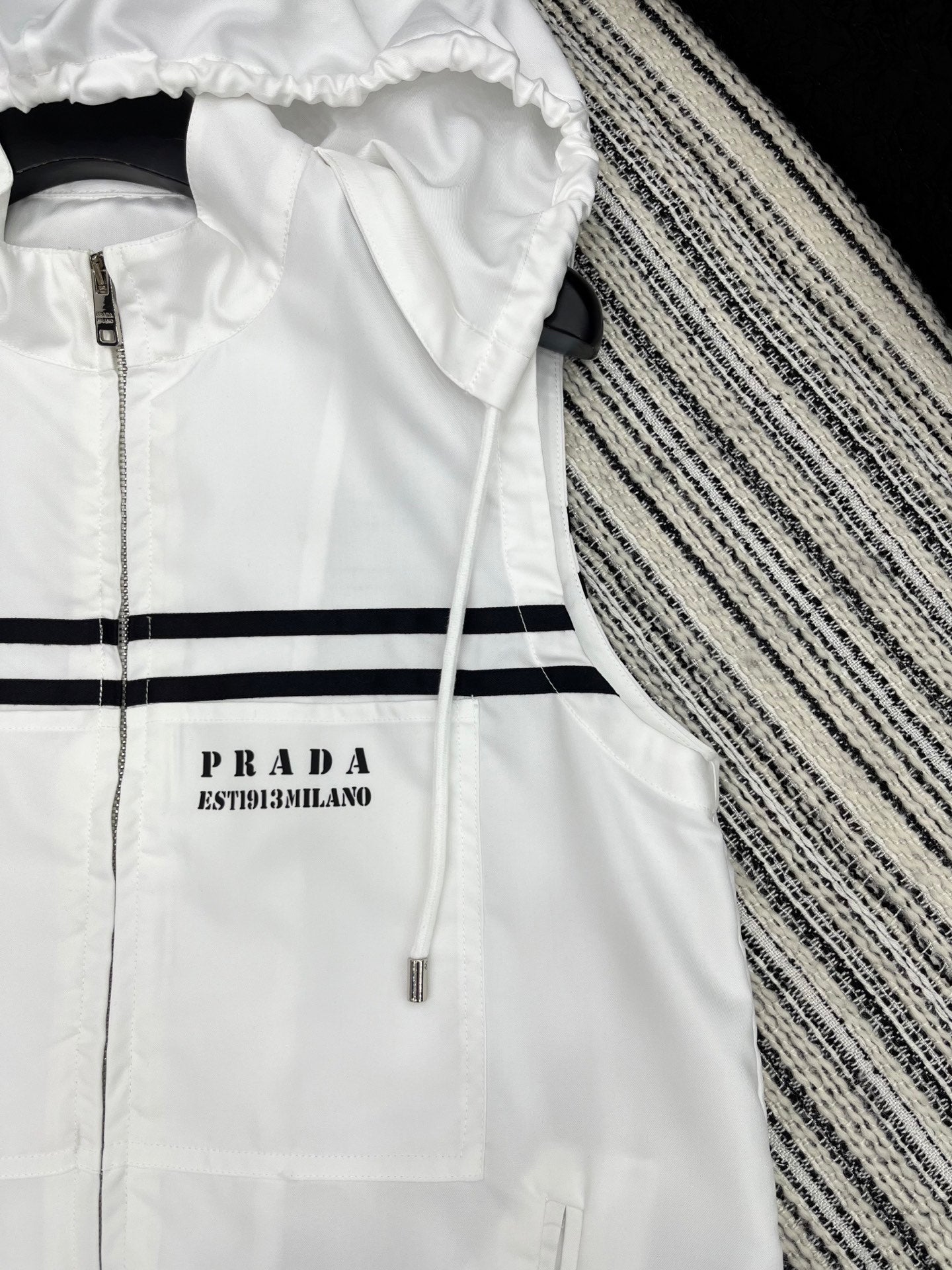25 Summer new contrast color hooded vest with elastic waist drawstring shorts suit