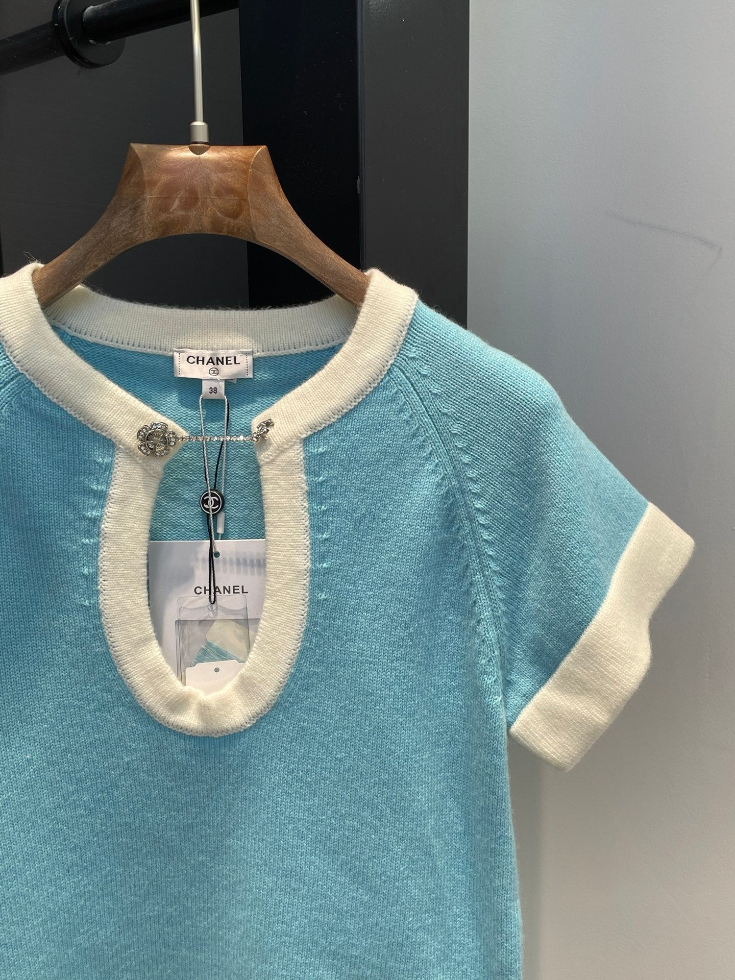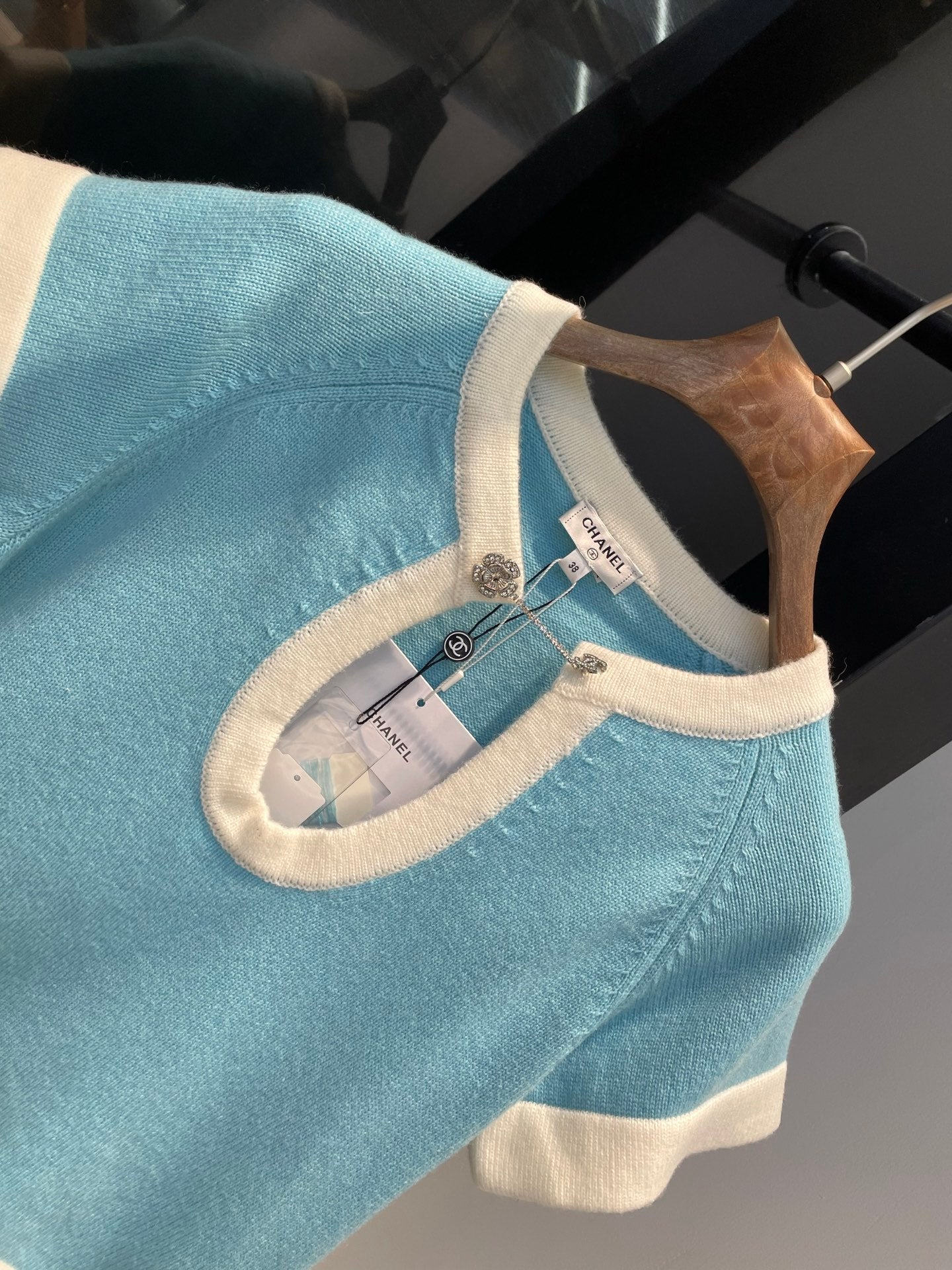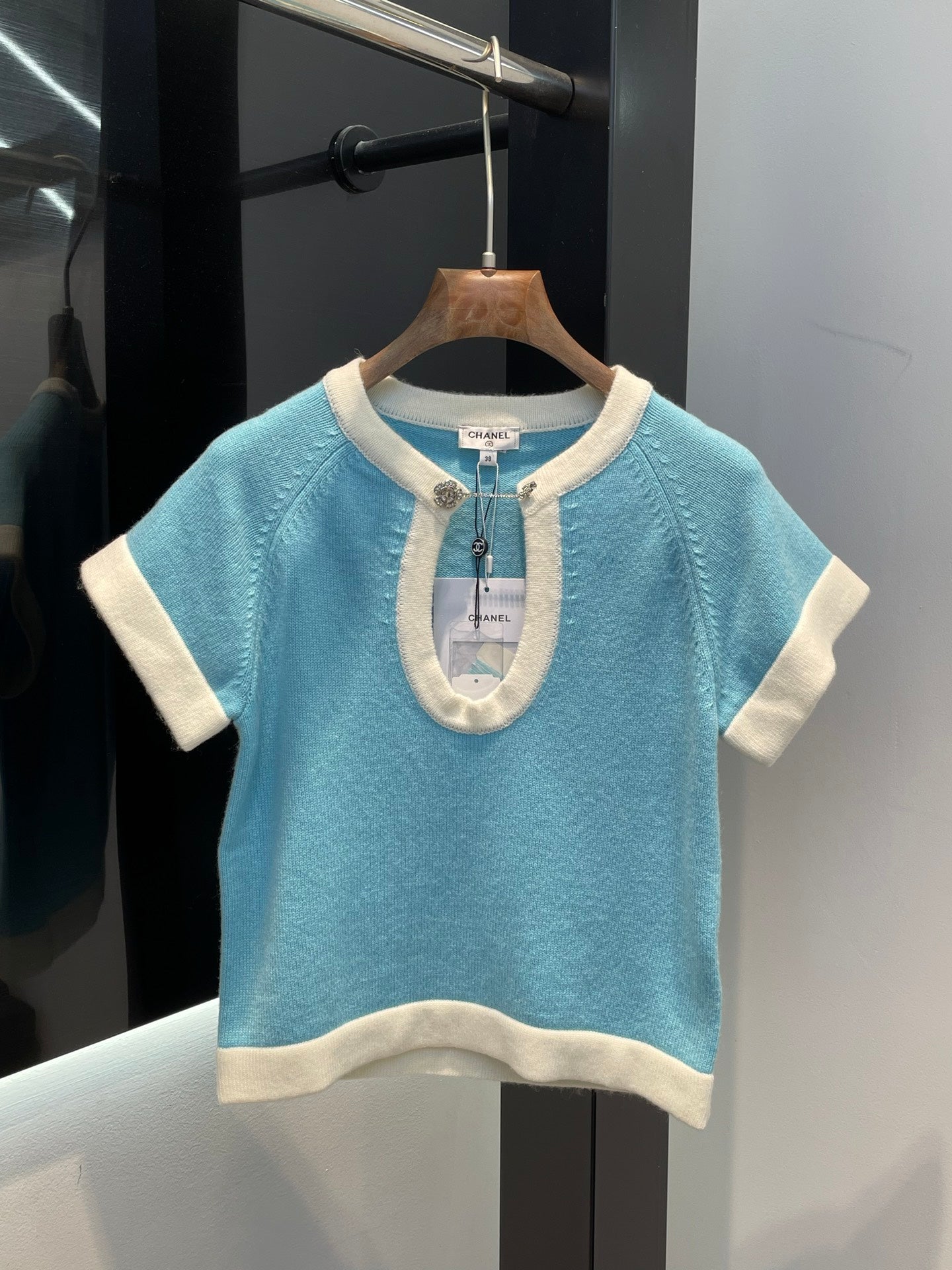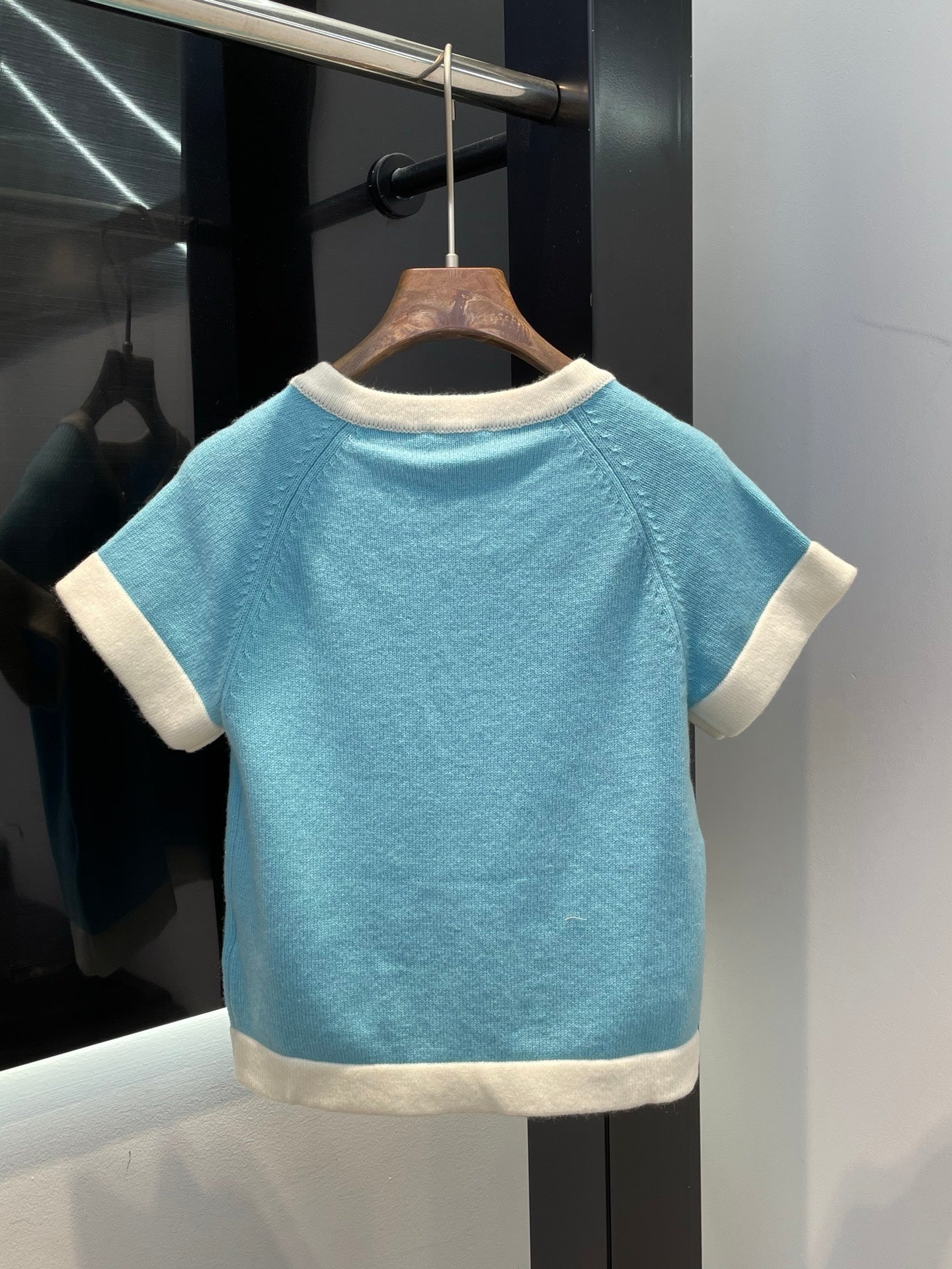 Elegant girl knitted suit with contrasting stripes and color matching ~ very fresh and refined. Deep U-neck with exquisite rhinestone buttons. Full of high-end feeling. Custom knitted yarn is not restrained when worn. It makes you look younger and sweet.