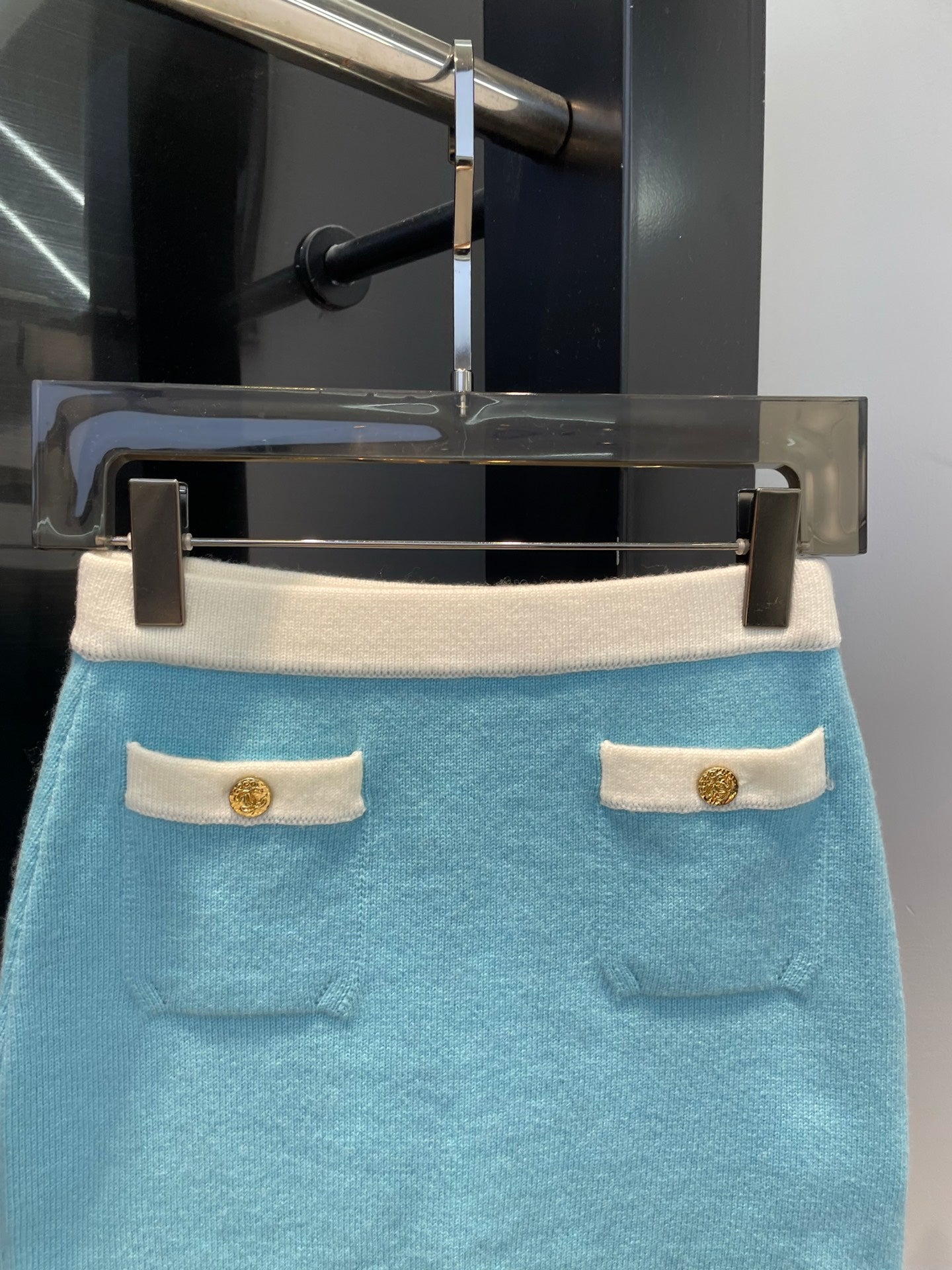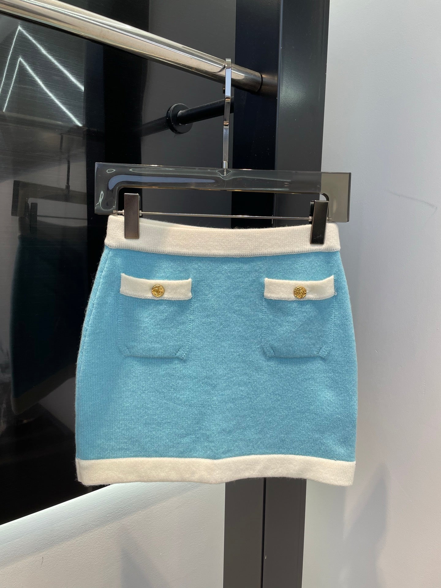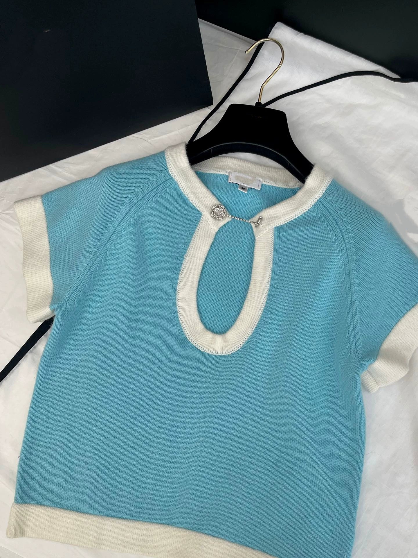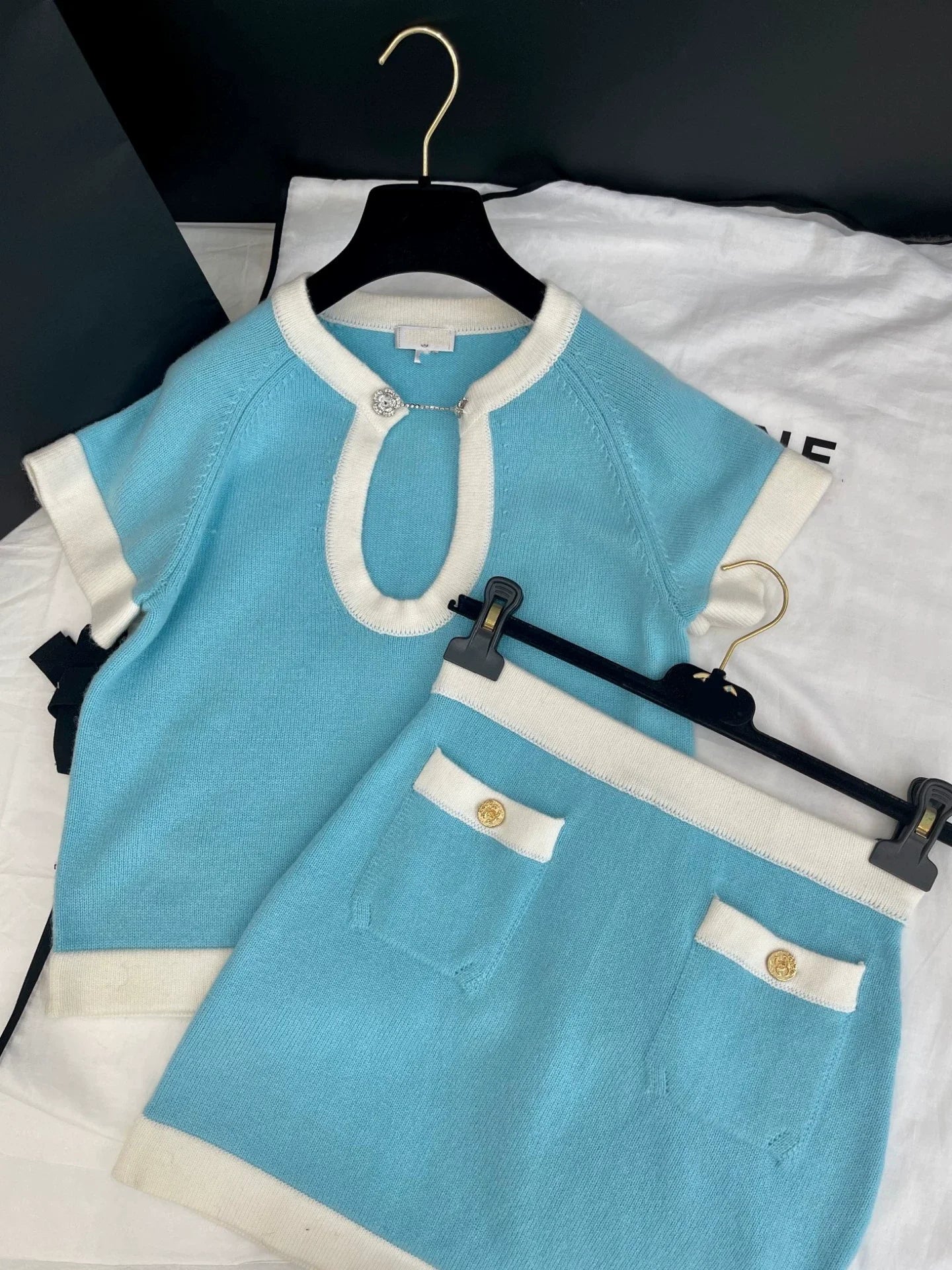 25 Summer New Elegant Contrast Color Knitted Top Skirt Set