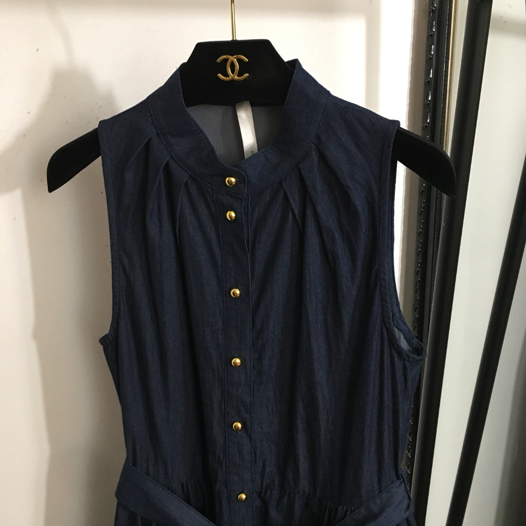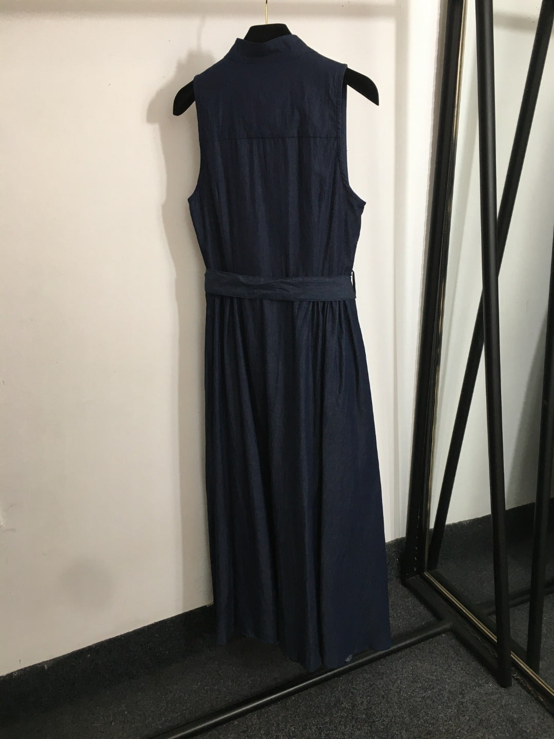 25 Summer new style lace waist stand collar sleeveless vest dress denim skirt