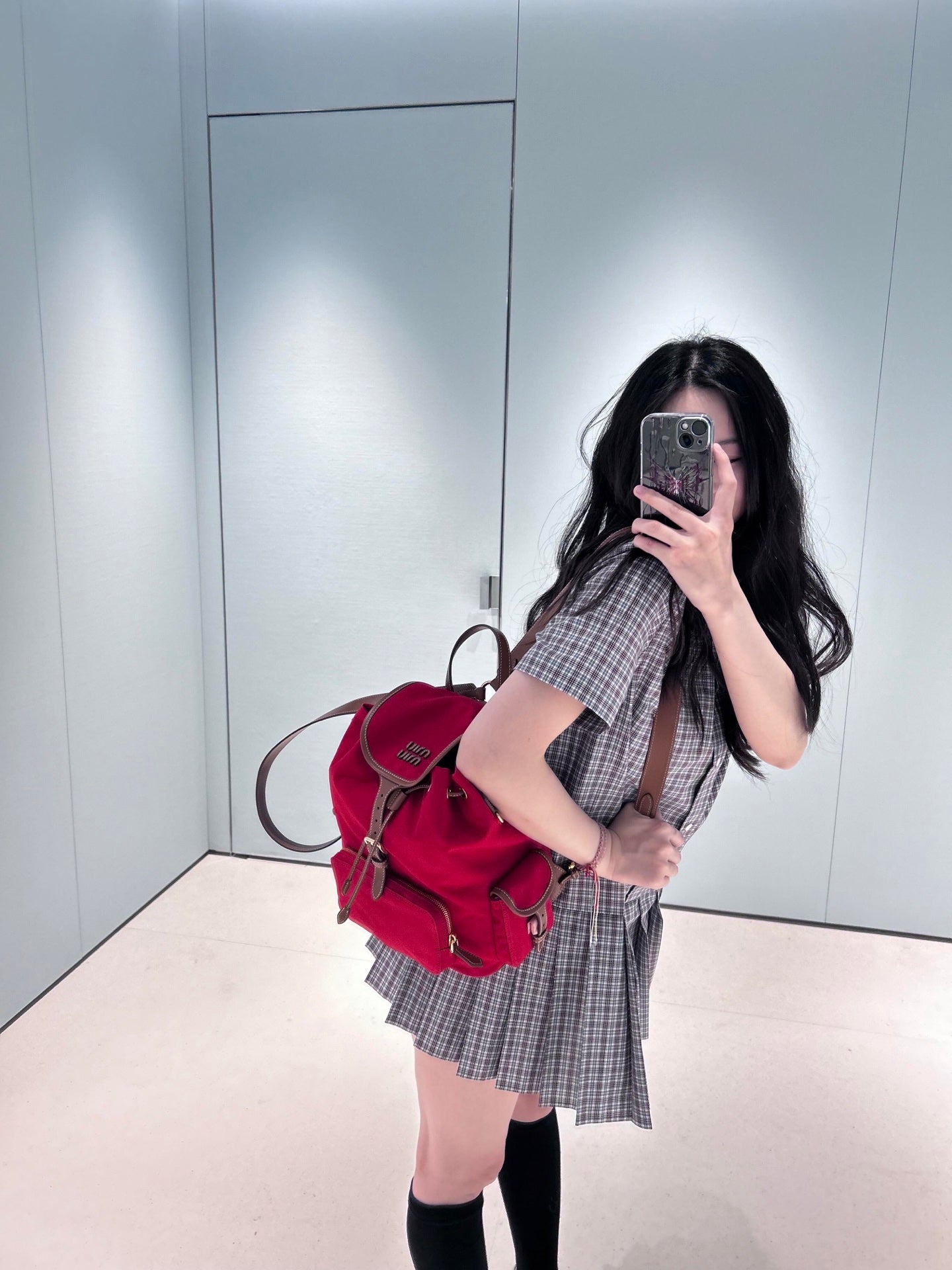 Exclusively developed by yb! High-end product! New products with college style patterns are here again, and a series of them are all out. You can easily create a high-end look with the same color scheme - button-down shirt with pointed collar, three-dimensional letter logo embroidery on the chest to highlight the style, customized single-breasted front, spliced pleated skirt, which is super suitable for petite girls. The draped straight version is not picky, the upper body is young and fashionable, and the girlish feeling comes out at once