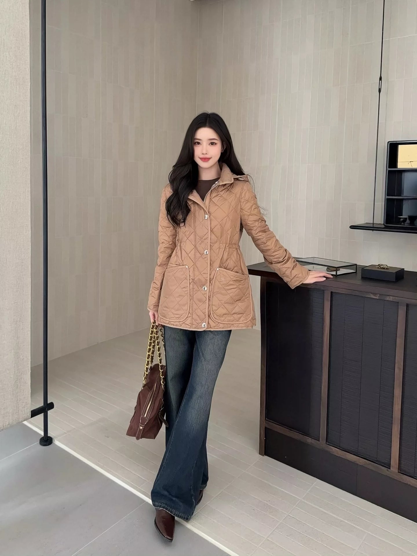 BRU 25 New Diamond Quilted Hooded Down Jacket Mid-Length Jacket